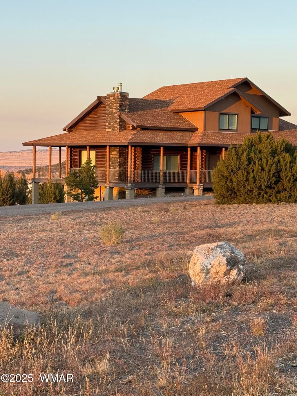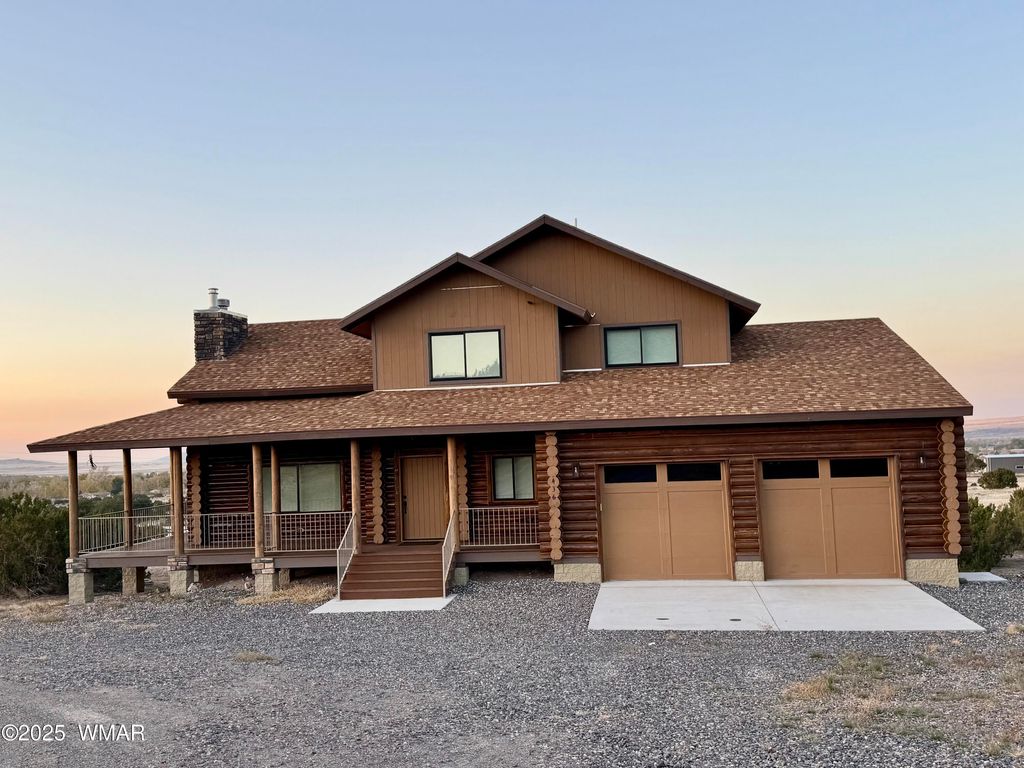 PRICE REDUCED! Stunning 2-Story log home features fireplace & breathtaking views! The perfect blend of rustic charm and modern luxury with vaulted ceilings thoughtfully designed for comfort and entertaining. Wrap around porches for added living space, open layout, This home invites you to soak in the beauty of every season"”right from your own living area with a stunning fireplace and wall of oversized windows flooded with natural light designed to showcase the surrounding landscape. Modern kitchen with premium finishes. Spacious primary bedroom on main floor, on suite, large walk in closet, with scenic views. Second floor features an open loft, 3 bedrooms and full bath. Walk out basement has separate entrance and features large game and family room. All new window coerings. One bedroom, full bath, large pantry/storage. Plumbed for additional fireplace. Bring your horses and enjoy life in a small town. Call today for more information!