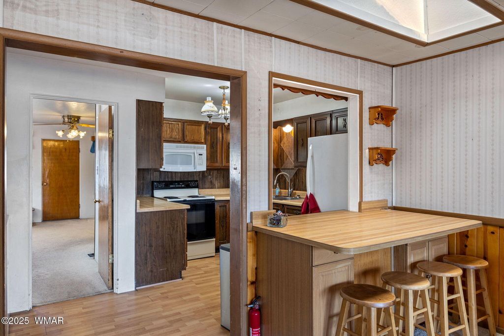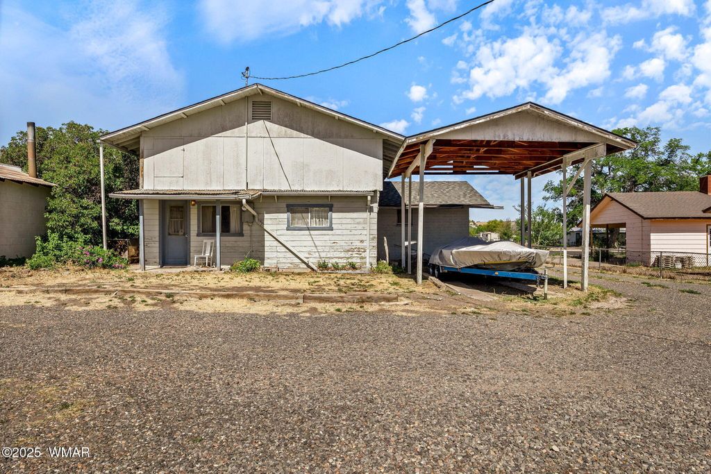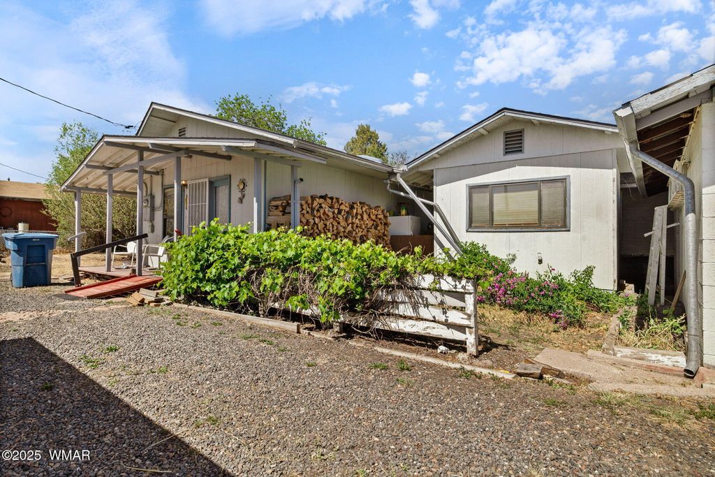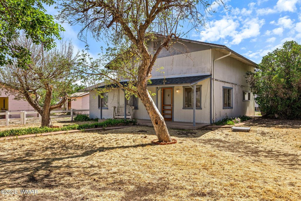Located in the heart of Eagar, this unique property offers incredible potential with two homes on nearly an acre (0.92 acres) of horse property. The main home exudes vintage charm and character, ready for your personal updates to make it shine. You'll love the abundance of mature fruit trees, hour and a half of irrigation, and multiple outbuildings providing ample storage and functionality.