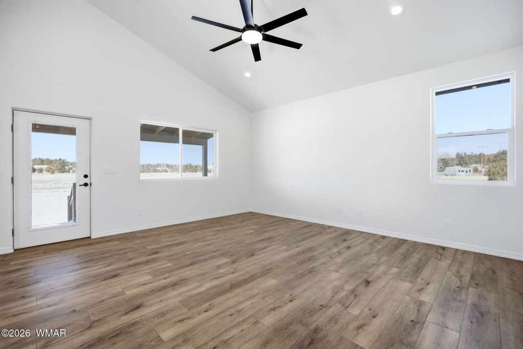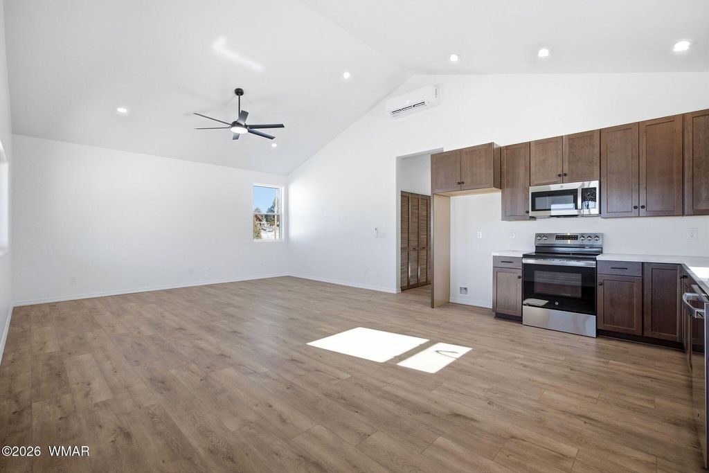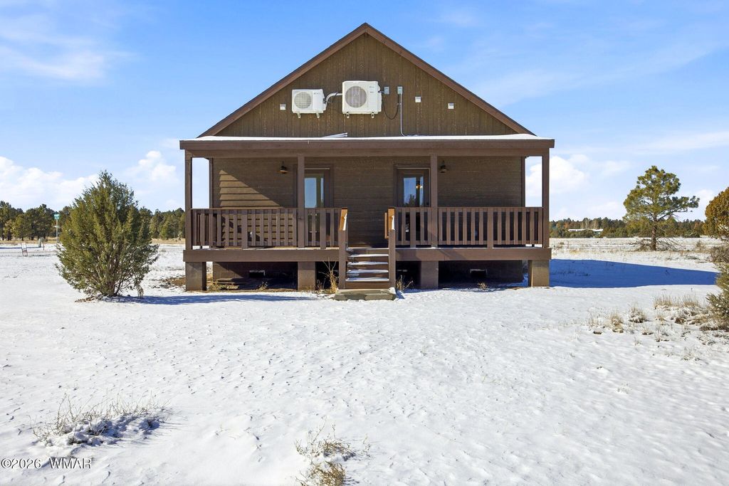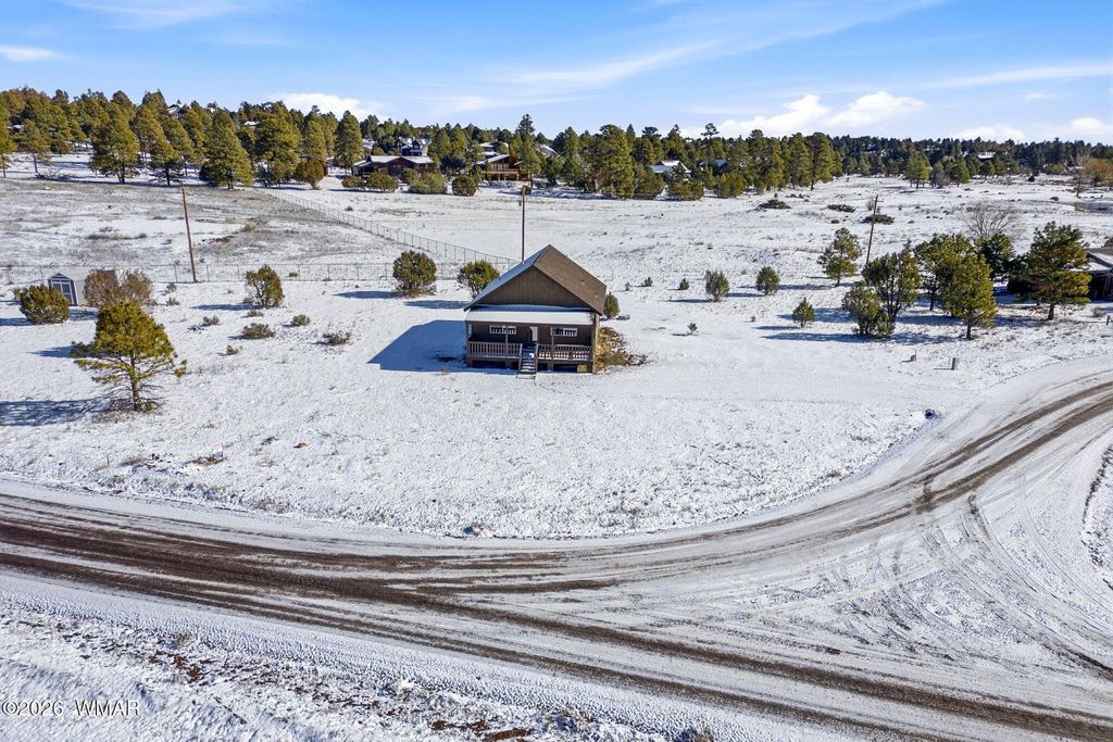 Nestled in the heart of Arizona's cool high country, this delightful 2-bedroom, 2-bathroom cabin offers the perfect blend of rustic charm and modern comfort. Located on a spacious 0.37-acre homesite in the mountain community of Overgaard, this inviting property is your ideal year-round escape or weekend getaway. Inside boasts an open great room that welcomes you with warm laminate wood flooring, soaring ceilings, and plenty of natural light. The kitchen features granite countertops, ample cabinetry, and a functional layout.