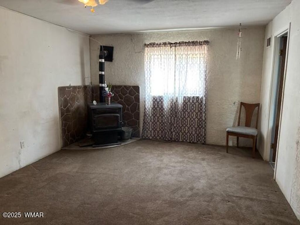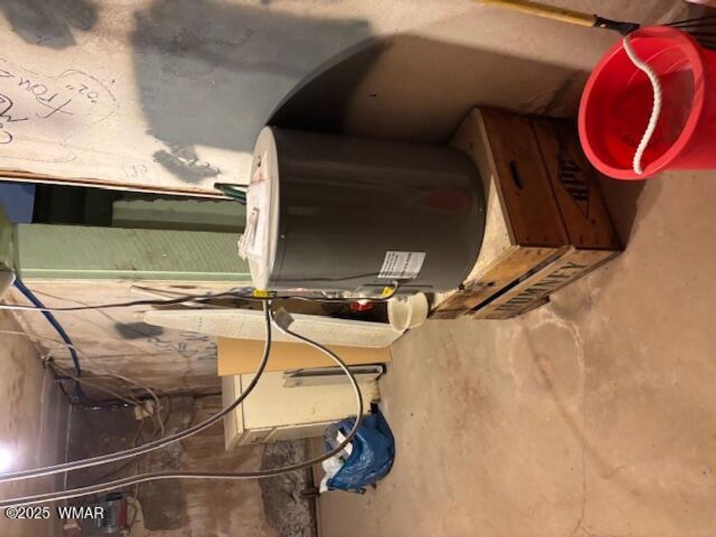 Historical adobe home built in 1935 sits on a large half acre lot in the original part of St. Johns. Property comes with one share of irrigation rights. The large home has original wood floors, doors and knobs. The addition was built in 1979 to add the second floor. There are 2 bedrooms 1 bath and a den upstairs, and 2 bedrooms, 2 baths downstairs. There is a dining area off the kitchen but home is staged with dining in the front/living room. The large family room has a pellet stove. The home is ready to be lived in but could be spectacular with a little TLC and updating. Partially furnished. Detached Garage needs new roof but is otherwise functional. RV Gate. Room to add additional garage or casita on the property.