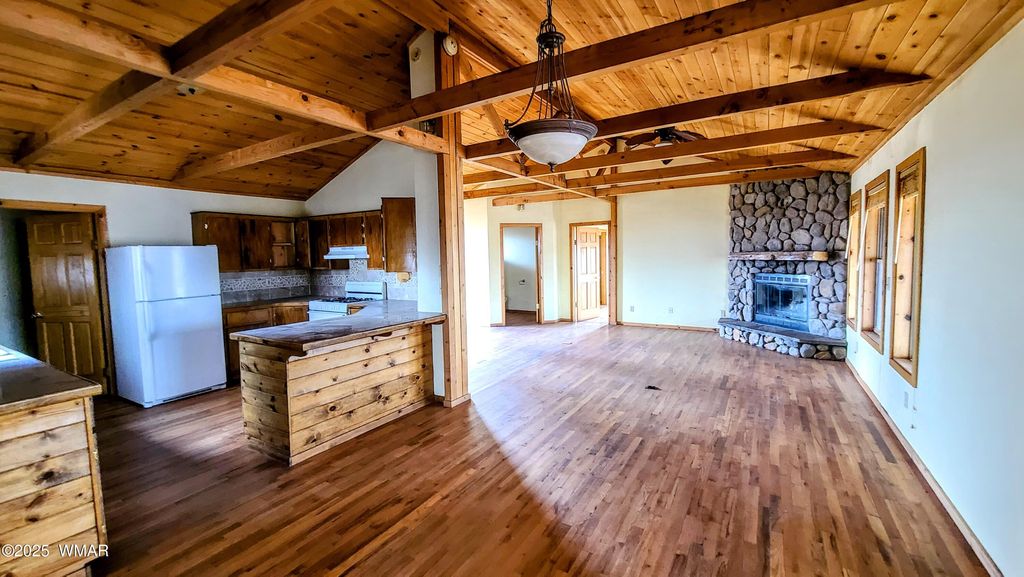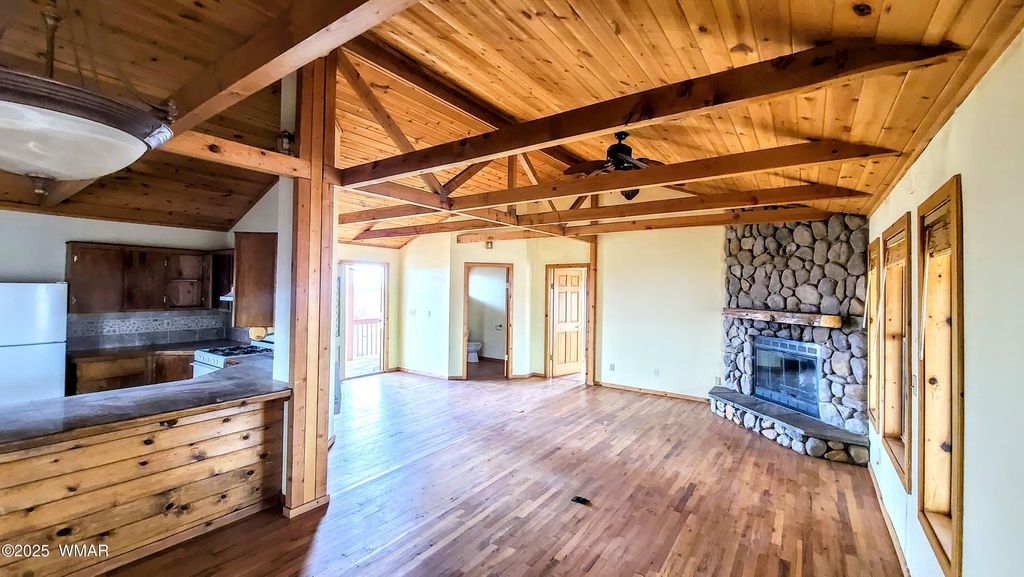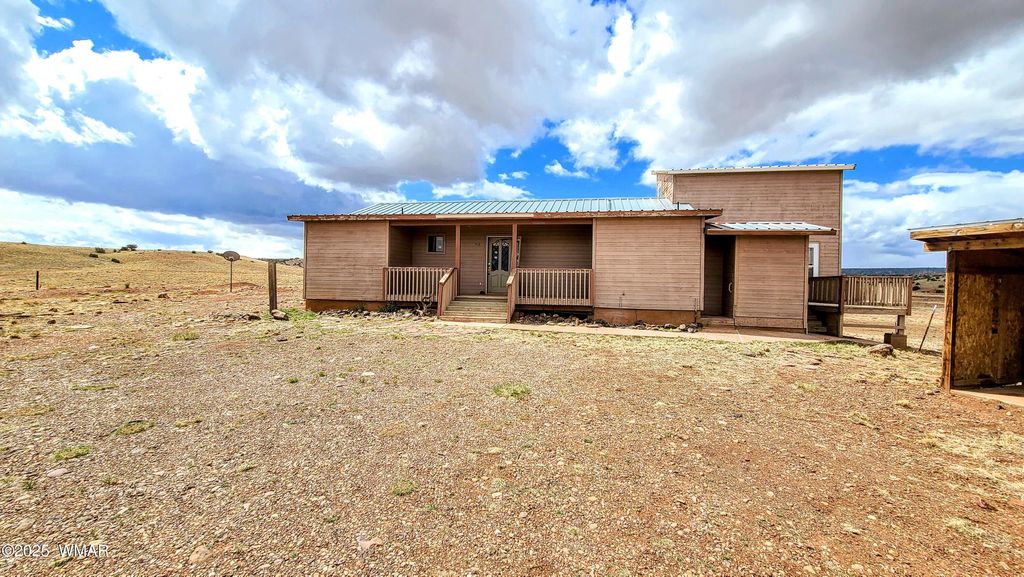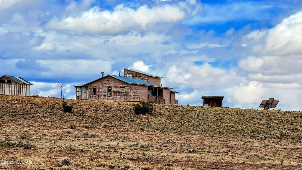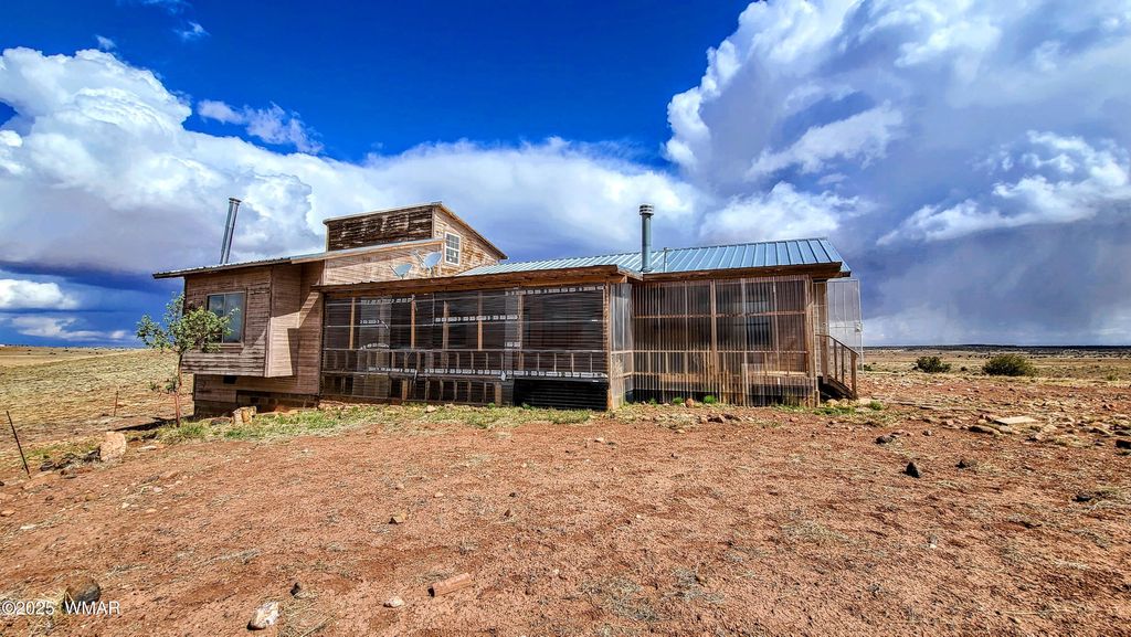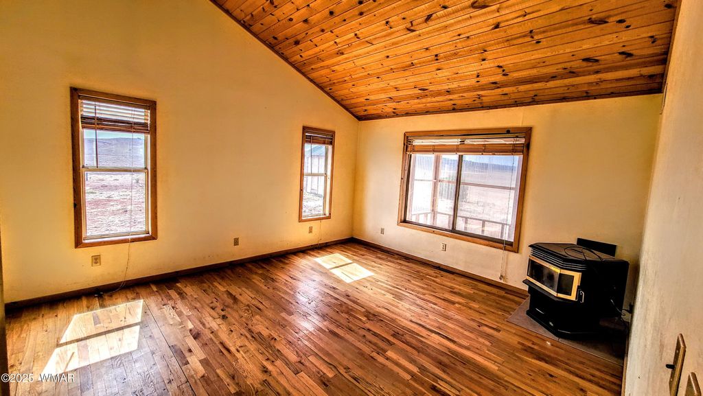Charming 3-bedroom, 3-bath home offering 1,907 sq ft on 1.49 acres of open land. Built in 2003, this property features vaulted wood ceilings, hardwood flooring, exposed beams, and a spacious kitchen with wood cabinetry and tile counters. Multiple heating sources include a wood-burning stove, pellet stove, and stone fireplace. The exterior includes a screened porch and covered entries. Surrounded by wide-open skies and natural terrain, the setting provides ample outdoor space, fresh air, and unobstructed views. A versatile rural property with room to personalize and use in many ways. See a virtual tour https://www.vr-360-tour.com/e/qfEBlqMFPzs/e?hide_e3play=true&hide_logo=true&hide_nadir=true&hidelive=true&share_button=false