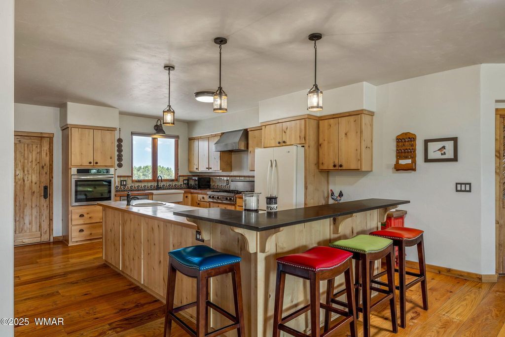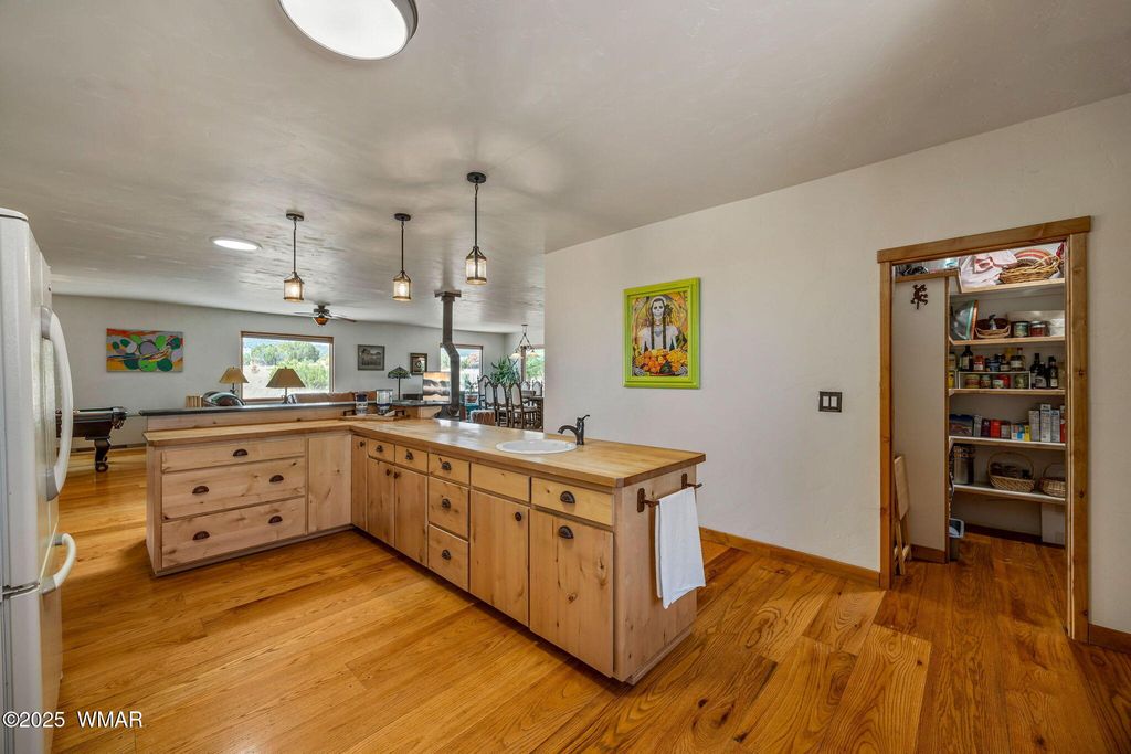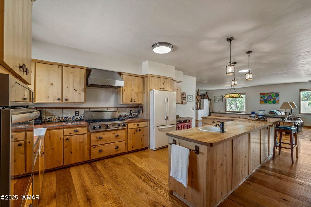 Inside, you'll find red oak wood floors sourced from Virginia, complemented by classic Saltillo tile and solid custom wood doors that highlight fine craftsmanship. The chef's kitchen is a true centerpiece, featuring a Viking cooktop, maple butcher block countertops, and a spacious pantry"”perfect for both everyday living and entertaining.