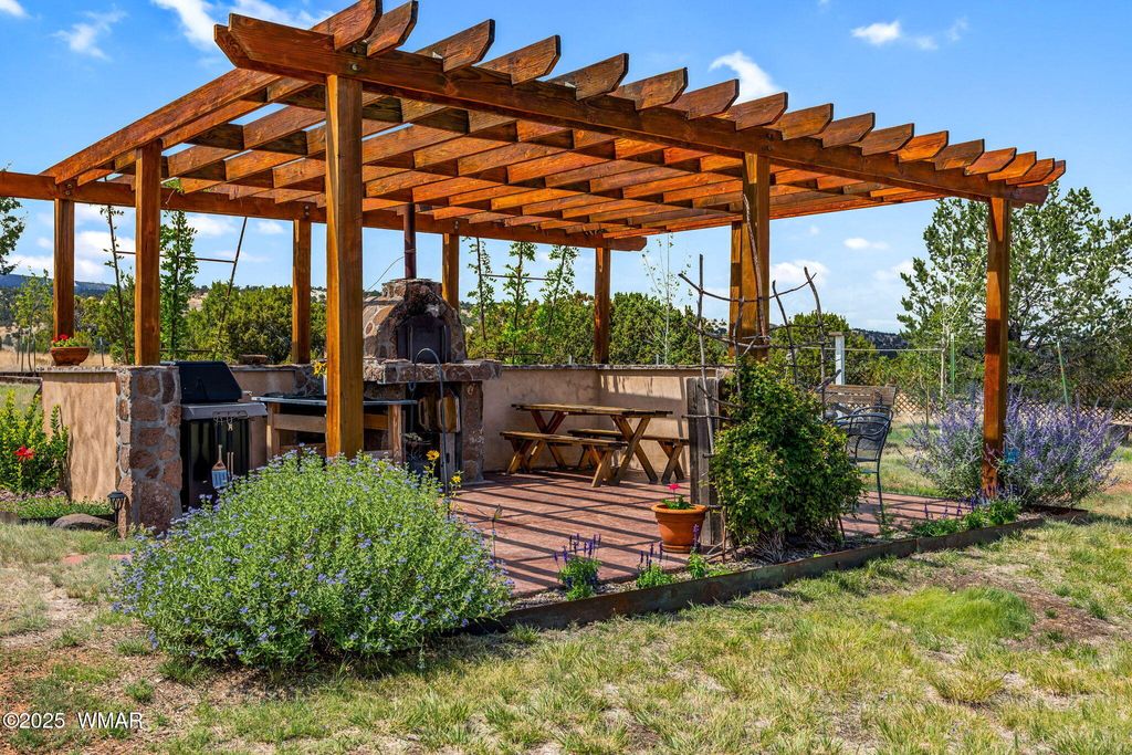 Outdoor living is at its best with a covered back patio and jacuzzi, along with a pergola featuring a wood-fired pizza ovenperfect for relaxing evenings and hosting gatherings. A 12x10 garden shed adds convenient storage for tools, hobbies, or gardening needs.