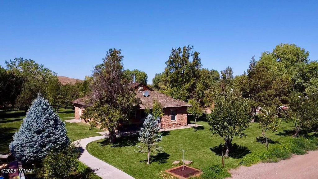 Picturesque 5.45-acre working farm on the banks of the Little Colorado River! This property features a fully renovated farmhouse (2010-new wiring, plumbing, insulation, mini-splits, and windows), plus a second historic block home, currently gutted and teeming with restoration potential. The working heart of this property includes two 12×24 storage rooms, a 20×36 workshop, a 12×24 cellar, and a chicken coop-perfect for storage, processing, crafting, or livestock care. Surrounded by a producing orchard (apple, peach, and pear trees), and holding valuable irrigation rights from the Woodruff Irrigation District, the land is fertile and primed for growing, grazing, or market production. Farm equipment, trucks, tractor, welder trailer, and other implements may convey with a compelling offer. Fully fenced and waiting for your vision, be it a hobby farm, commercial operation, or agritourism venture-every opportunity awaits! Woodruff's favorable climate allows for longer growing seasons, making this a versatile investment. Seller is motivated, will consider all serious offers, and open to trade.