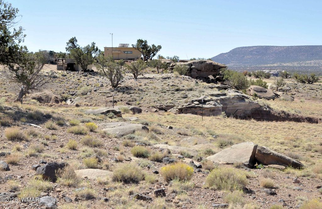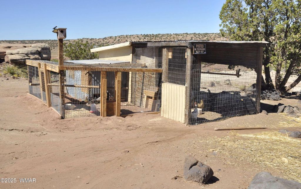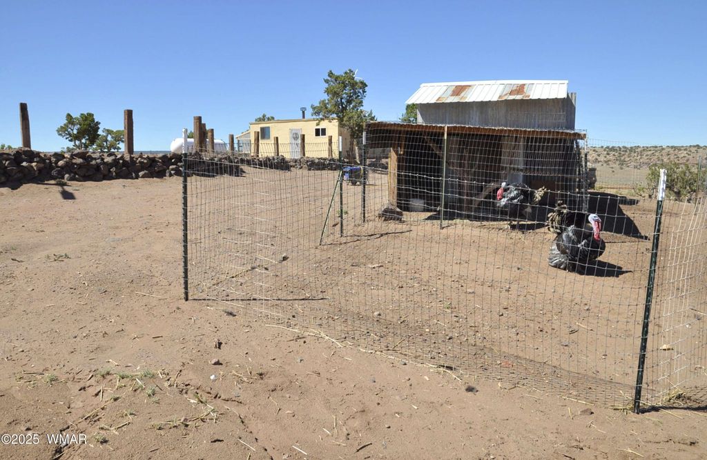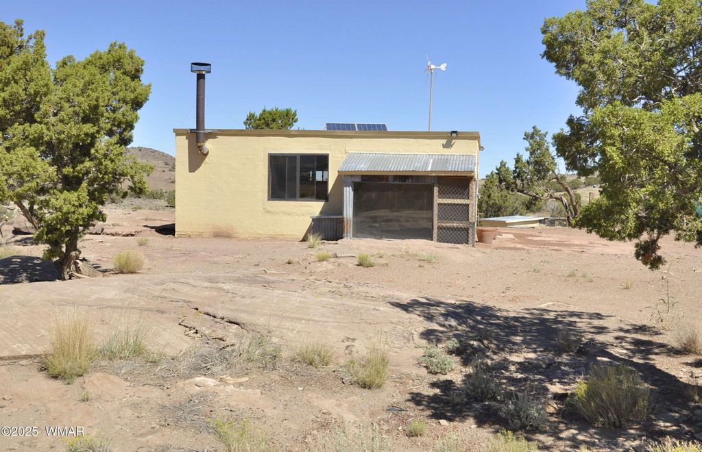 38 ac, remote off grid property to live sustainably/self sufficiently. Beautiful views, nice rock outcroppings, private & secluded. 4400 watt gas generator for power conveys. Partial 24 volt solar system in place. 2500 gal water holding tank..have water delivered to or drill a well into the Coconino Aquifer for good, abundant water. 325 gal propane tank is owned/conveys. Home is 24 x 24, 1BD/1BA (needs some finishing, but livable). Large functional chicken coup, storage shed & work shop area, plus lots of building materials convey. Wood burning stove keeping home warm during cold months. Most furniture conveys. Two ways in to property: one to the NW corner and one to the NE corner. Large flat area all scraped & level w/underground plumbing run...for potential permanent... home. Property borders a sec (640 ac) of state land. Lots of character with this property...rich in Native American artifacts, petrified wood, & fossils. Property has been surveyed into 28 ac on the east & 10 ac on west end. Corner pins in place...new survey not recorded w/county. Most of the property borders lined with T-posts, & cross fenced w/T-posts. Generator is a Duromax XP4400E. Sellers disclosures under documents.