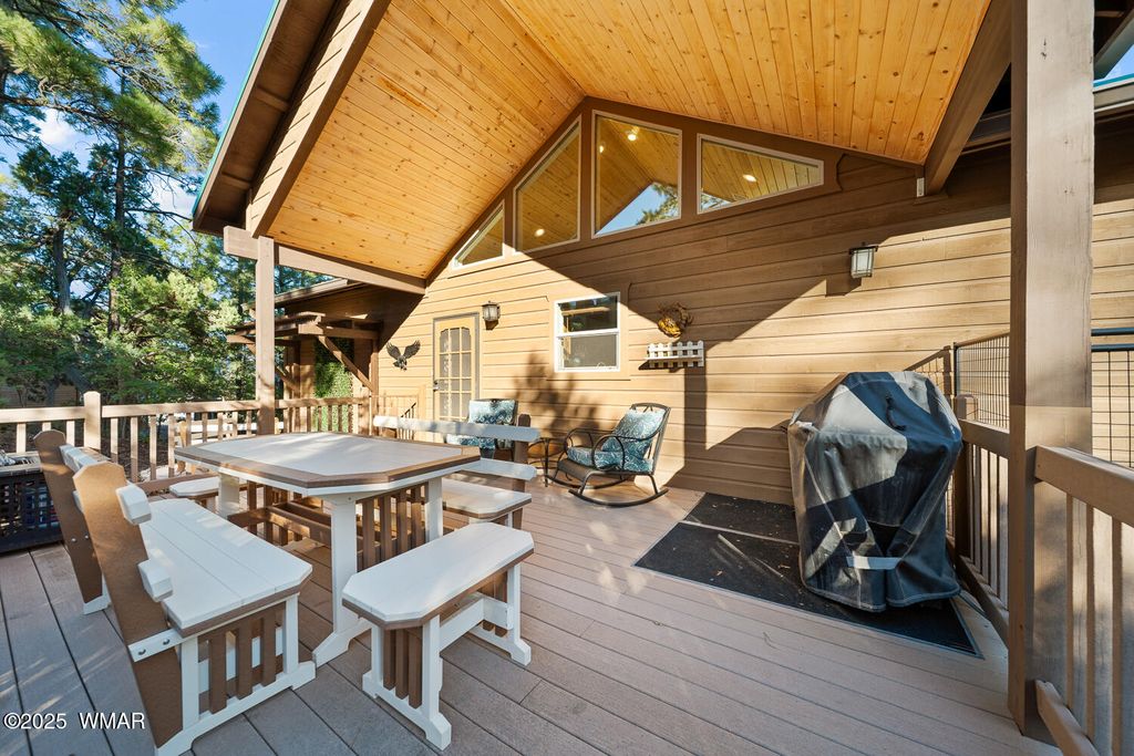 A meticulously landscaped and easily maintainable yard with plenty of front a back decks for views and entertaining.