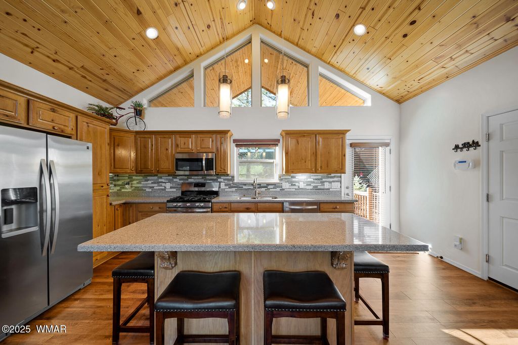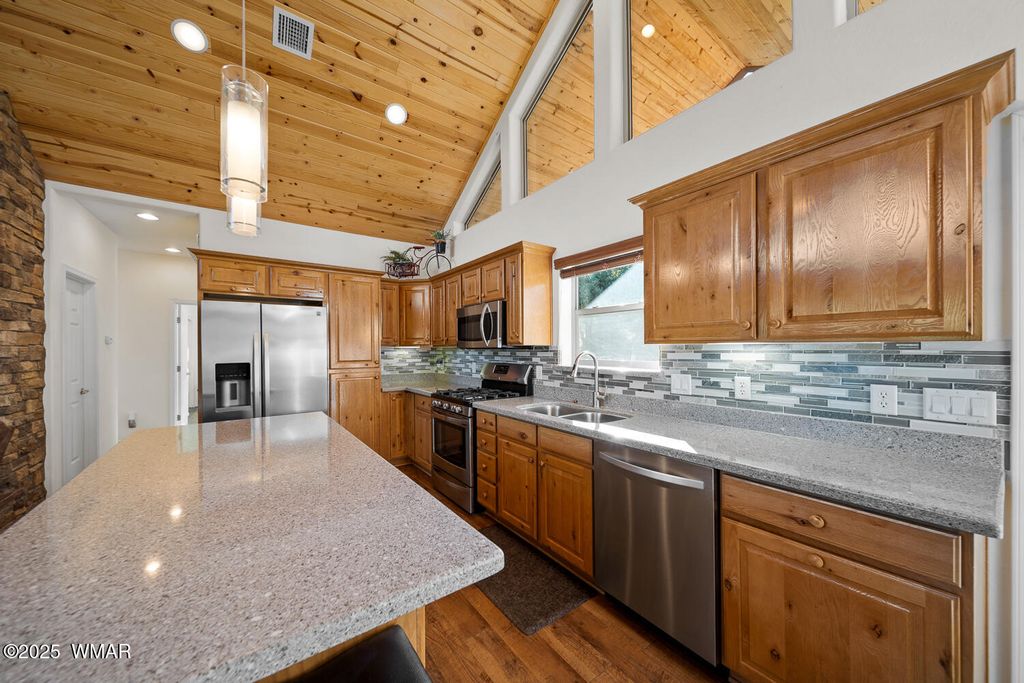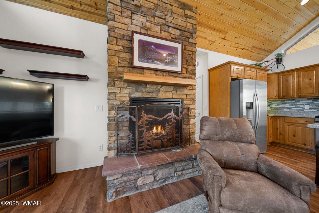 Vaulted T&G ceilings, Open spacious floor plan, natural lighting throughout, Granite counter tops, under cabinet lighting, and a Custom floor to ceiling stone fireplace and a tankless hot water heater among many other conveniences.