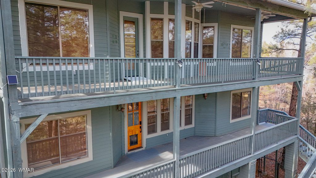 Discover effortless mountain living in this 3,273 sq ft home tucked inside a gated community, offering exceptional space, privacy, and year-round comfort. The home sits on a .18-acre lot surrounded by towering pines and the soothing sounds of a nearby creek--peaceful and secluded without feeling remote. An additional adjoining parcel is available, allowing buyers the rare opportunity to expand the property to a total of .41 acres (MLS # 259362). The thoughtfully designed interior features four bedrooms, including one ideal for a home office or study, along with a split floor plan perfect for multi-generational living or hosting guests. Recent upgrades include new granite countertops, a new roof, smart-home automation, LED lighting, and numerous modern enhancements throughout. The kitchen is designed for both function and gathering, featuring dual ovens, a pot filler, built-in microwave, and ample workspace. Additional highlights include three laundry areas, a spacious bonus room with wet bar, and flexible living spaces ideal for everyday comfort and entertaining. Outdoor living shines with treetop views from the double coved balcony and a fully fenced backyard featuring a brand-new St. Lucia hot tub with waterfall features your private mountain retreat. Built for low maintenance, the home includes hardy-board siding, mesh-covered gutters, smart thermostats, and a compact front yard with smart irrigation. Modern comfort meets natural serenity perfect for summer escapes, holiday gatherings, or full-time mountain living. Owner is a licensed real estate agent in Arizona.
