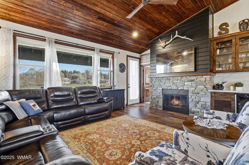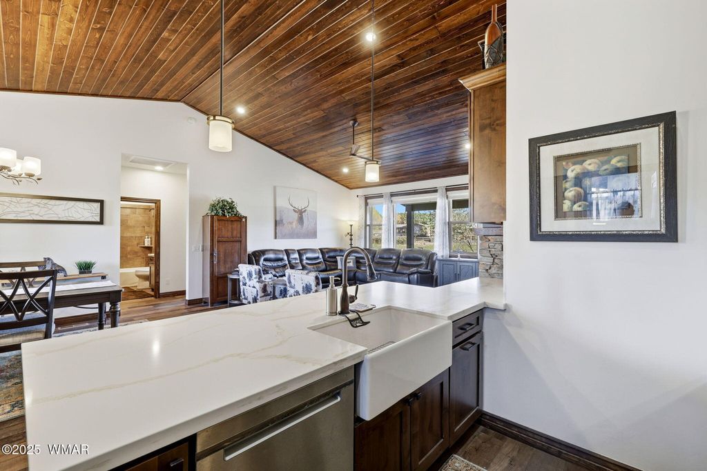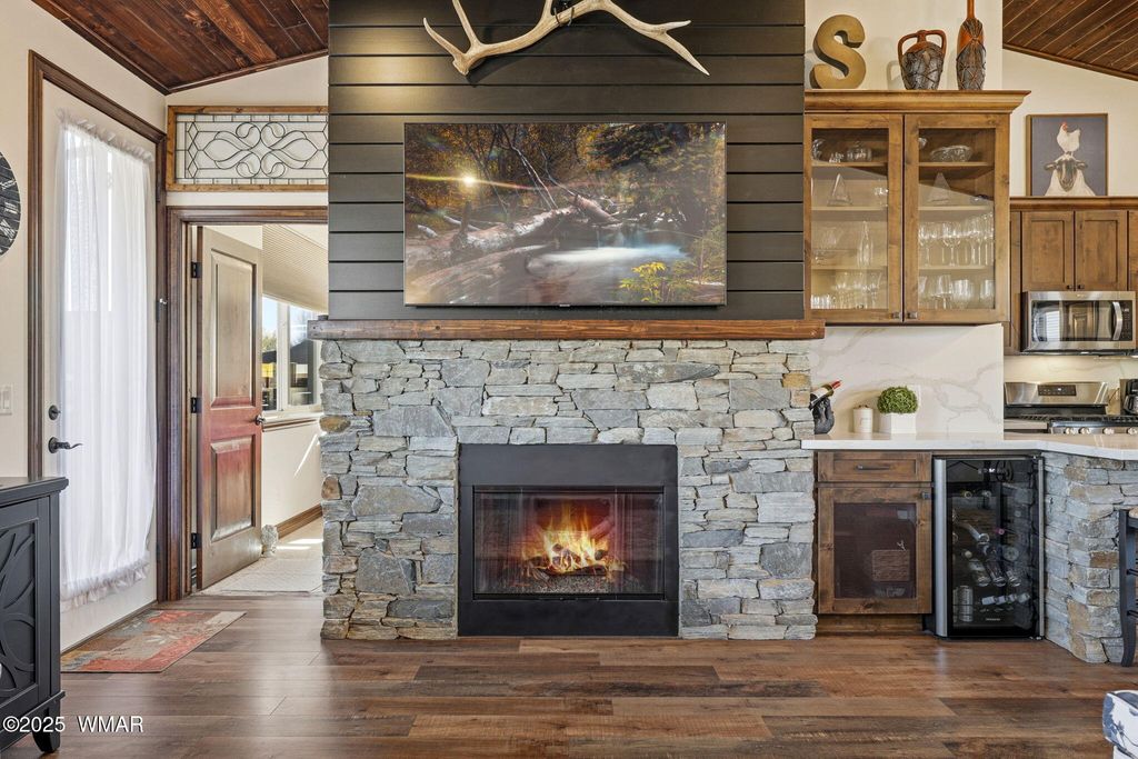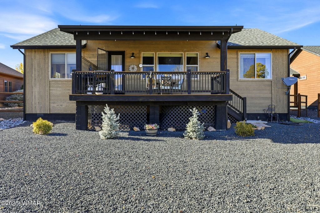 Enjoy Show Low's mountain air from the back deck overlooking the pond & golf course. The exterior is designed for low-maintenance living with durable siding & decking, a paver driveway & large two-car garage. The split-rail log fencing adds that perfect mountain touch to the backyard.