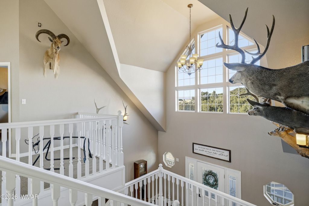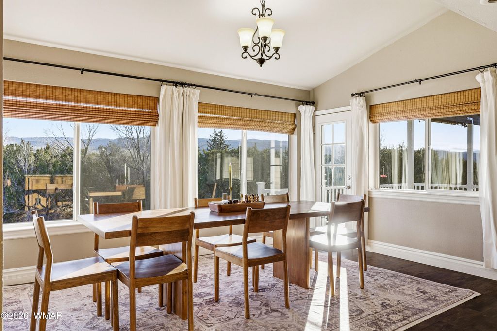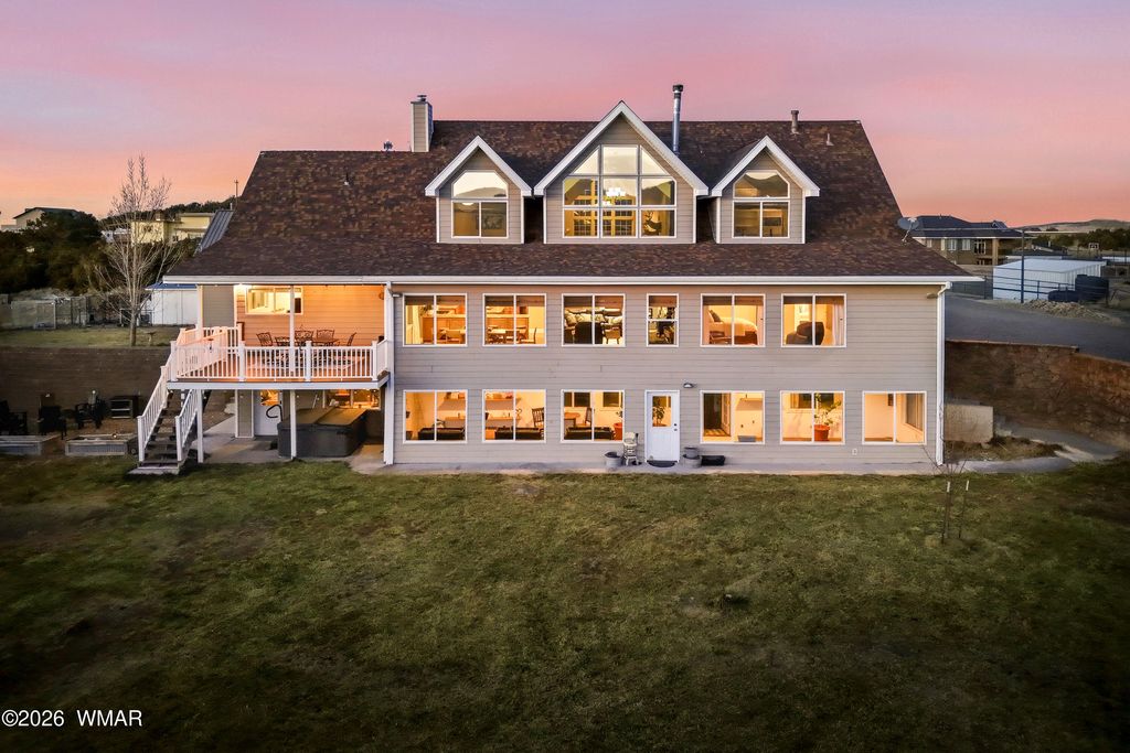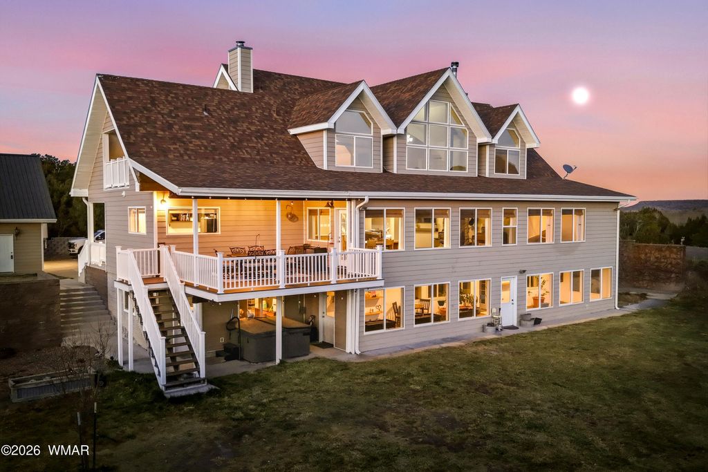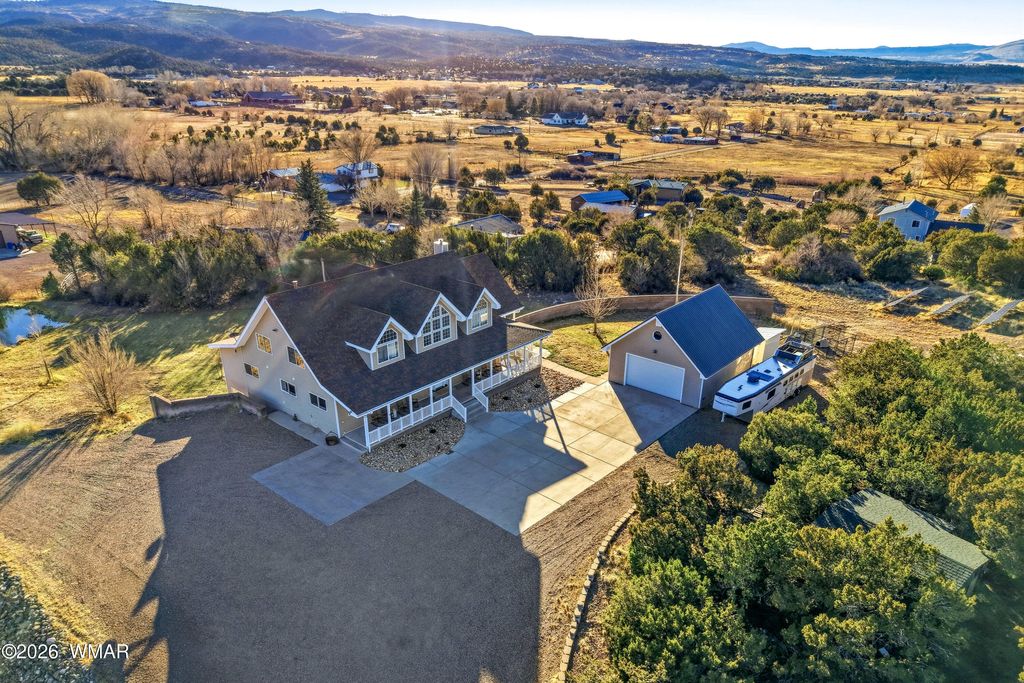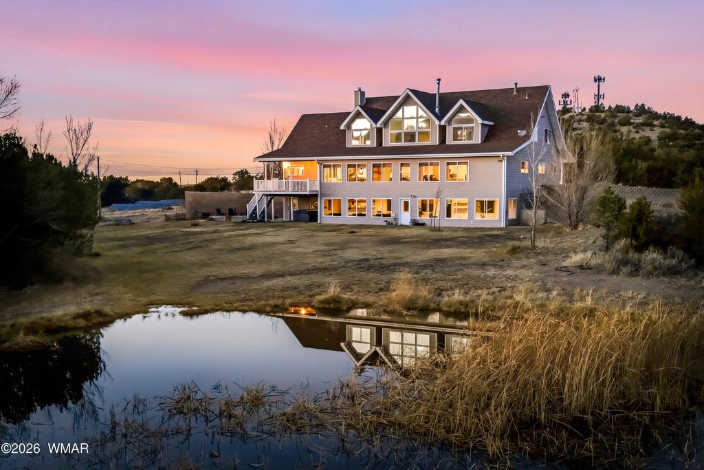 Gracefully positioned on over three acres of pristine, tree-lined land, this exceptional five-bedroom, three-and-a-half-bath residence is a rare offering that seamlessly blends refined craftsmanship with timeless country charm. Spanning three thoughtfully designed levels, the home features a walk-out basement and an abundance of outdoor living spaces, including multiple balconies that invite moments of quiet reflection while taking in the unparalleled surroundings. Designed with both comfort and versatility in mind, the home boasts two expansive primary suites, each complete with private ensuites"”ideal for multigenerational living or hosting guests in absolute privacy. An elegant office or study, accented by a custom built-in desk, provides a tranquil workspace that complements the the home's serene setting. From the moment you arrive, the storybook front porch captures the essence of classic country living an inviting space destined for morning coffee, evening sunsets, and memories yet to be made. Inside, the home reflects true pride of ownership, with meticulous attention to detail evident throughout every room. The backyard sanctuary is nothing short of enchanting. Mature trees encircle a peaceful private pond, suitable for stocking with fish, creating a setting where nature and tranquility converge. A detached, oversized garage adds both functionality and character, offering ample space for vehicles, hobbies, or storage. Renowned for having one of the most breathtaking views in town, this property enjoys regular visits from elk and native wildlife, offering a lifestyle deeply connected to the land and seasons. Located in the heart of Eagar, this remarkable estate is just minutes from Greer, Sunrise Park Resort, and Big Lake, placing year-round recreation, mountain escapes, and outdoor adventure at your doorstep. This is more than a home it is an elevated country lifestyle, where elegance, privacy, and panoramic beauty come together in perfect harmony. Never worry about being too cold as there is radiant heating in the floors on every story. Very large pantry and storage space for your family and guests. There is so much more to this home, it is a must see!!