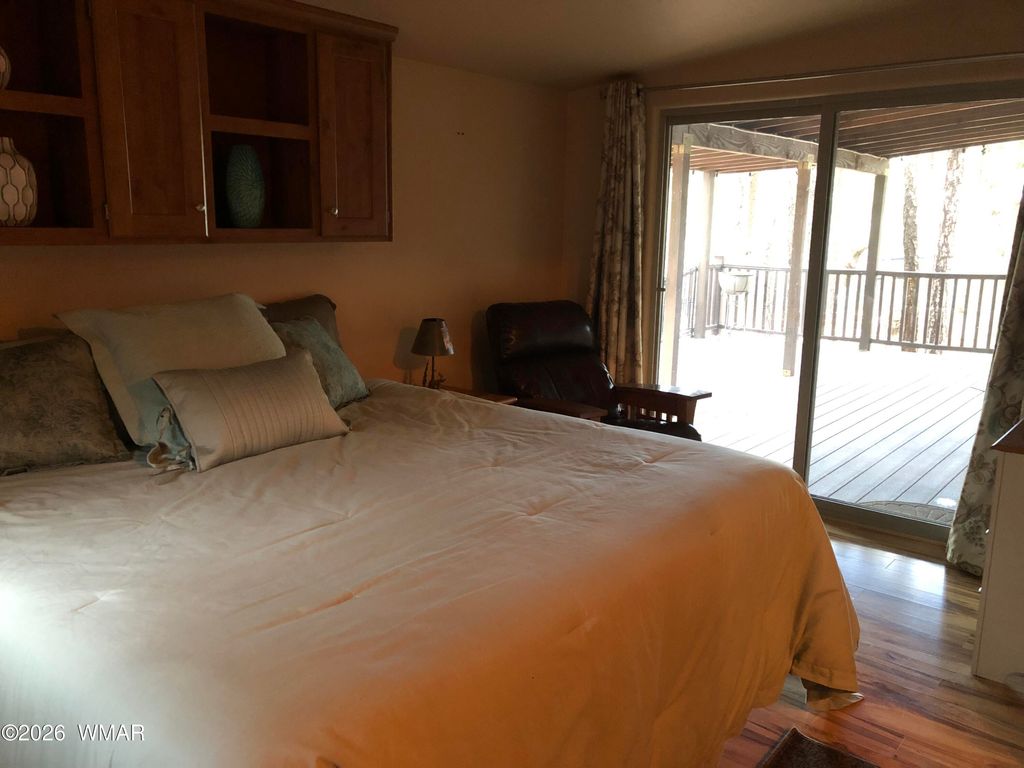 Come join us in the beautiful white capped mountains in the highly desirable White Mountain Vacation Village. As you walk up the steps onto your beautiful large front deck, you will want to sit back and relax and enjoy the views of the green pine trees and breathe in the fresh crisp air. This great cozy cabin is set back against open land with no one behind you except the deer passing through. A custom addition was added in 2017 that adds a large primary bedroom with King sized bed, nice sized mirrored closet and enclosed laundry closet. There is also a loft that has a queen bed with storage and a place for storing more clothing. Kitchen has been upgraded with stainless steel appliances, single stainless sink, and quartz countertop. Plenty of storage space. Fully furnished. Also has a work shed for all your tools. If that wasn't enough, the private backyard is also a great place to be including a garden bed and seating to look at no one but nature. The community itself has so many activities, you will never be bored including events with live music. HOA includes water, trash, internet at clubhouse, and snow plowing of streets