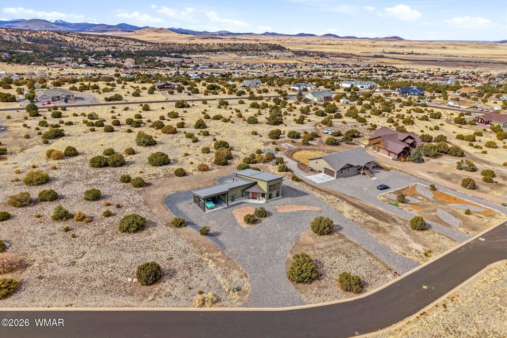 Modern Single-Level Luxury | 1,727 SF Custom Retreat with Views! Experience uncompromised quality in this masterfully crafted, 2024-built custom home. Boasting a spacious 1,727 sq. ft. single-level floor plan, this residence is designed for those who value architectural sophistication and intentional living. Situated on a gently sloping 1.04-acre lot in Eagar, it offers panoramic White Mountain views and a rare modern aesthetic. Inside, the expansive open-concept living space is defined by high-end solid cabinetry throughout and a striking quartz waterfall island. Oversized windows flood the home with natural light, framing the mountain scenery from every angle. From the custom finishes to the intentional floor plan, every square foot reflects a commitment to quality and contemporary design. The exterior features an oversized carport and a versatile 1.04-acre footprint--offering ample space for a future detached workshop or custom hobby space, thoughtfully positioned to preserve the home's stunning unobstructed views. Located just minutes from the pristine trails and world-class recreation of the Apache-Sitgreaves National Forest, this is the perfect sanctuary for those seeking a quiet, elevated lifestyle in the heart of the high country. Schedule a private tour to experience the quality and panoramic views of this modern retreat in person.