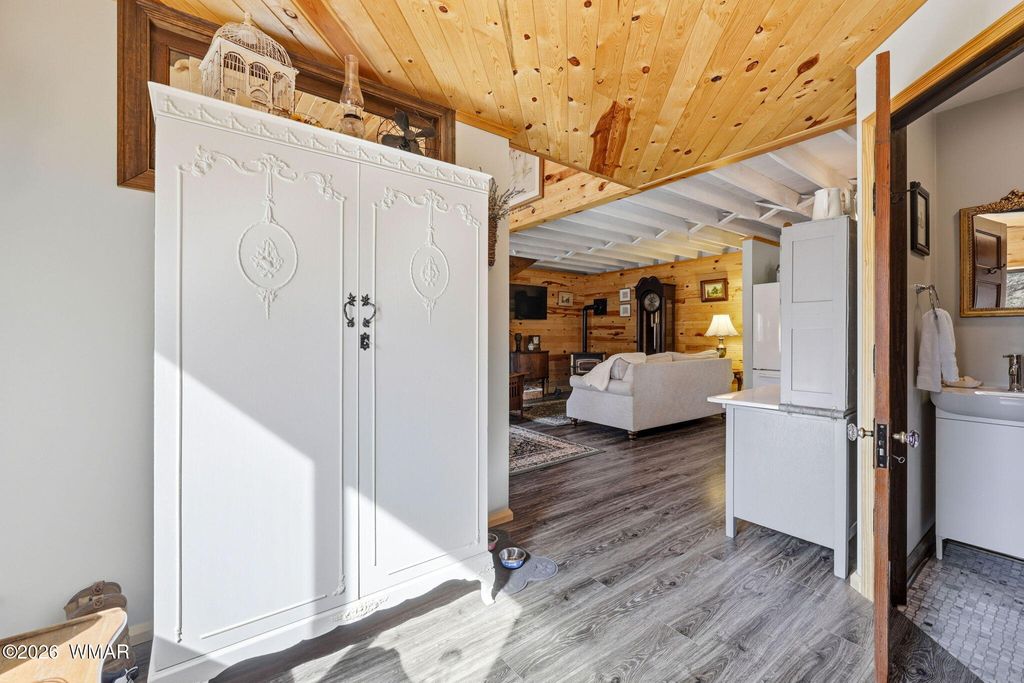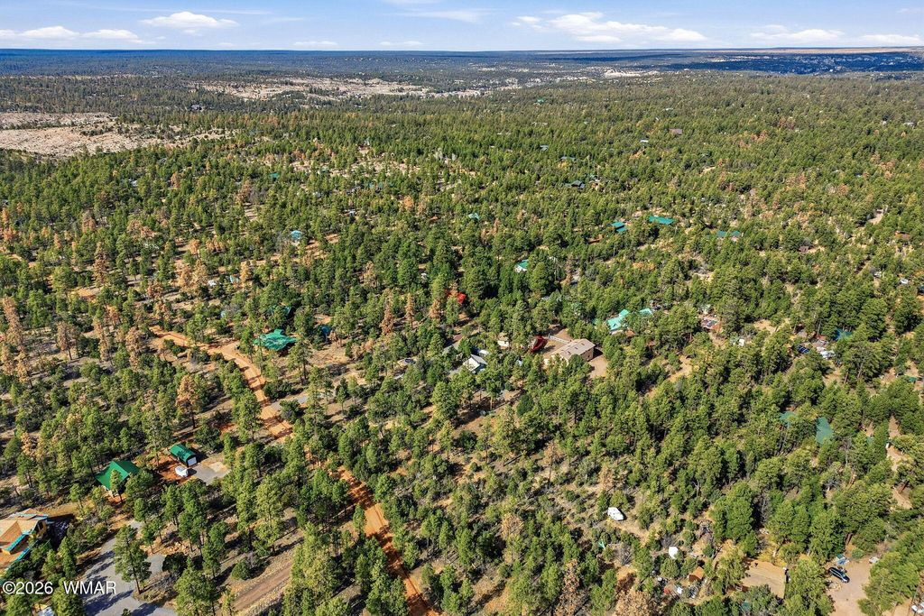 Tucked away in Section 31**, one of the most private and sought-after areas in Overgaard, this enchanting cabin sits among towering pines on an expansive 2.75-acre lot. The quality and character of this community is protected, and so is your investment.