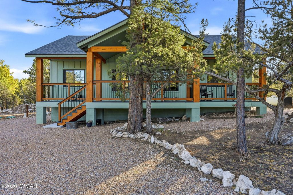 Welcome to this adorable ranch-style cabin offering comfort, space, and a fantastic location! Situated on a large corner lot that borders a peaceful greenbelt area, this property provides added privacy and a true mountain-living feel. Enjoy relaxing mornings and cool evening breezes from the covered front and back decks, complete with low-maintenance Trex decking"”so you can spend more time enjoying and less time maintaining. Inside, the bright and open great room flows seamlessly into the kitchen, creating the perfect space for entertaining or cozy nights in. The split floor plan offers privacy, featuring 3 spacious bedrooms and 2 baths. Durable laminate flooring runs throughout the home for easy care and a clean, modern look. You'll also appreciate the oversized laundry room with direct exterior accessideal for pets, projects, or everyday convenience. Located on paved roads with plenty of room to add a garage, workshop, or additional outdoor building, this property offers flexibility to grow with your needs. Whether you're looking for full-time living, a weekend getaway, or an investment opportunity, this cabin checks all the boxes!