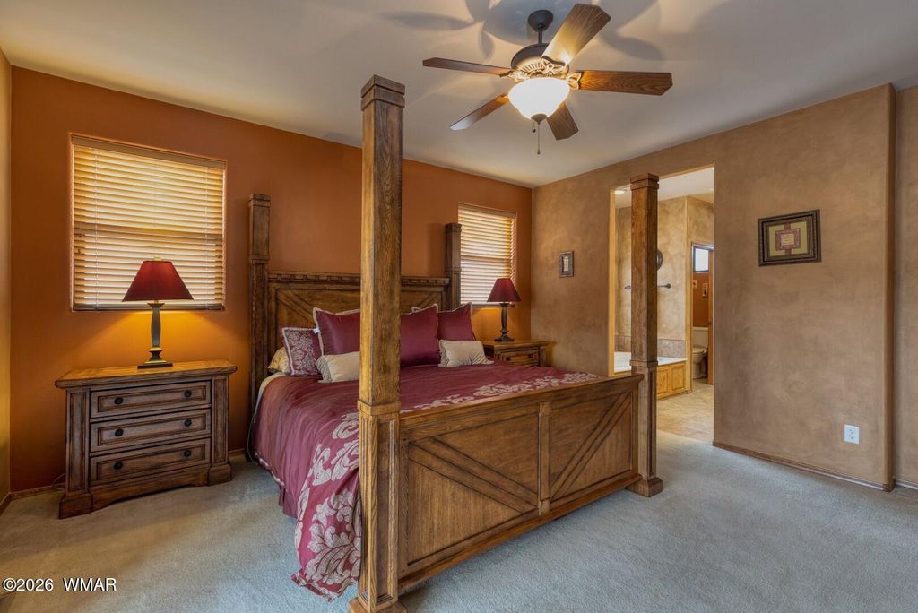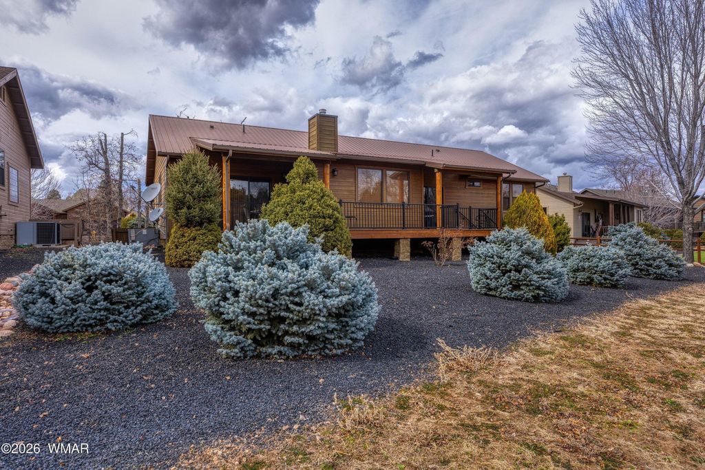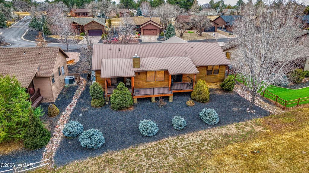 Welcome to your mountain escape in beautiful Show Low, where cool pines, fresh air, and fairway views set the tone for relaxed living. Perfectly positioned right on the golf course in a desirable gated community, this mostly furnished cabin offers the ideal blend of comfort, style, and easy mountain charm. Step inside to a large open kitchen and great room designed for gathering and unwinding. The dining area flows effortlessly onto the covered back deck"”perfect for morning coffee or evenings overlooking the fairway and small wetland. The inviting living room features a floor-to-ceiling rocked fireplace, creating a warm, cozy centerpiece for cool White Mountain evenings. A split floorplan provides privacy for everyone, with a spacious primary suite tucked away for peaceful retreat. The large master bedroom includes private access to the covered deck, a spa-like bath with jetted tub, separate shower, dual vanities, and a generous walk-in closet. Guests will appreciate their own comfortable space on the opposite side of the home, making this layout ideal for hosting friends and family. Outside, enjoy a beautifully landscaped yard and a large attached garage with plenty of room for vehicles, golf carts, or all your mountain toys. And the location? It's hard to beat. You're just minutes from great local restaurants, year-round golf, fishing lakes, and direct access to the surrounding Apache-Sitgreaves National Forests for hiking, biking, and exploring. Whether you're looking for a full-time home, a seasonal retreat, or a short-term rental property this fairway cabin delivers easy living with a breezy mountain vibe. Come see what life in Show Low is all about!