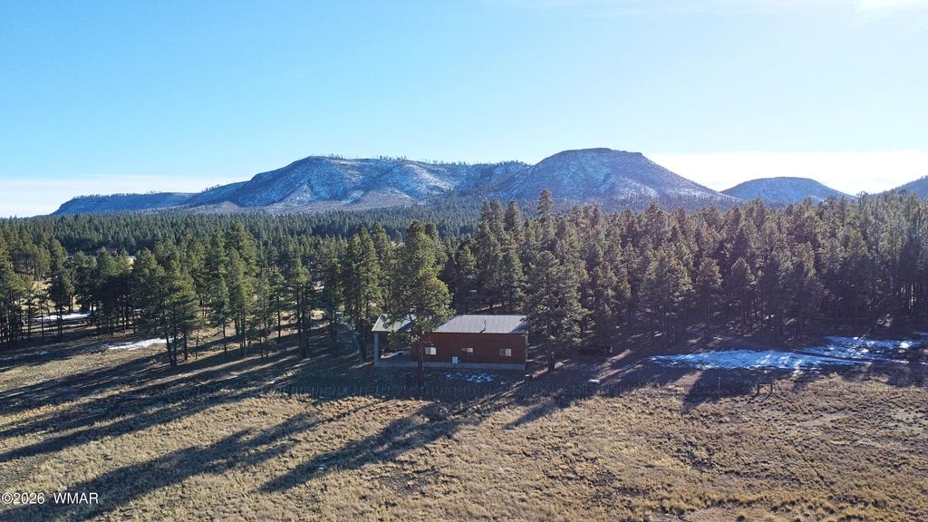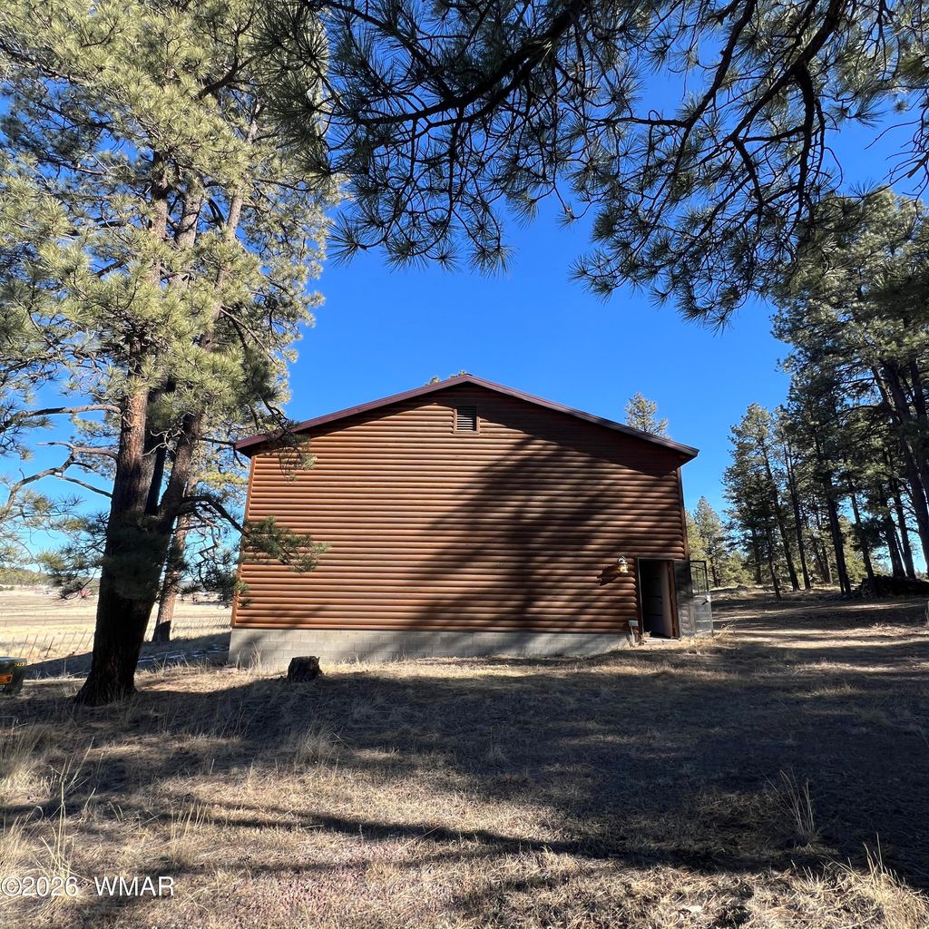 *22.54 ACRES WITH 360° WHITE MOUNTAIN VIEWS AND A RARE SHORT-TERM RENTAL OPPORTUNITY FOR RV ENTHUSIASTS!* Set in the pristine mountain landscape of Alpine, AZ, this exceptional property offers a truly unique concept for both personal enjoyment and income potential: a luxury barndominium designed to accommodate multiple RVs indoors, paired with a comfortable living space and the privacy of expansive acreage. With RV hookups and clean-out already in place, the property is perfectly positioned to serve a niche but highly desirable short-term rental market for RV travelers seeking something far beyond a traditional campground, offering secure indoor RV parking, full kitchen access, a private bathroom, and front-row views of the surrounding wilderness. Keep Reading to Learn More: The 2,400 sq ft log-sided barndominium features massive bay doors that open to an oversized garage space capable of housing multiple motorhomes, fifth wheels, side-by-sides, and other recreational equipment while still leaving room for storage or additional uses. The interior living area offers vaulted ceilings, a wood-burning stove for cozy Alpine winters, and a well-appointed kitchen with island, range, microwave, and refrigerator, creating a welcoming space to gather after a day exploring the mountains. The bathroom features heated floors and a spacious walk-in tiled shower, adding a level of comfort rarely found in recreational properties. A dedicated utility room includes washer, dryer, water heater, and a 1,500-gallon water storage tank, while an unfinished loft provides additional potential for guest accommodations or expanded living space. Outside, the expansive covered patio creates an ideal setting for relaxing and entertaining while taking in the remarkable scenery and frequent visits from the local elk herd that often roams the property. A private well provides independence and reliability, while the 22.54 acres offer abundant space to build a future mountain home, expand recreational amenities, or simply enjoy the privacy and freedom that define life in the White Mountains. Whether envisioned as a private retreat, recreational headquarters, or a distinctive income-producing property catering to the growing RV travel community, this Alpine property presents a rare opportunity to own land, views, wildlife, and a truly versatile mountain basecamp.