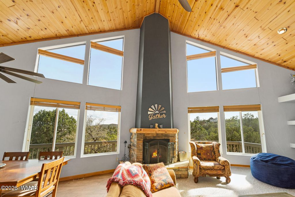 Step outside to the recently redone wraparound deck, partially covered for year round enjoyment. Whether enjoying a quiet morning or watching the monsoon clouds roll in and the unforgettable sunsets over the pines, the setting here is truly special.