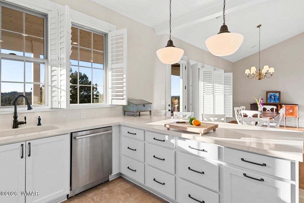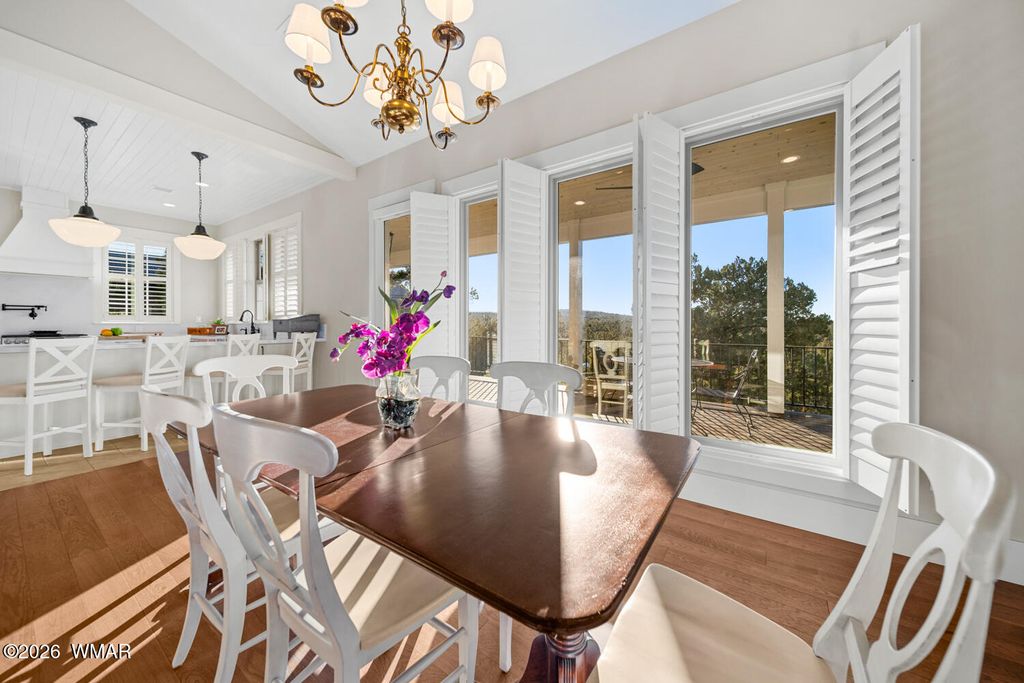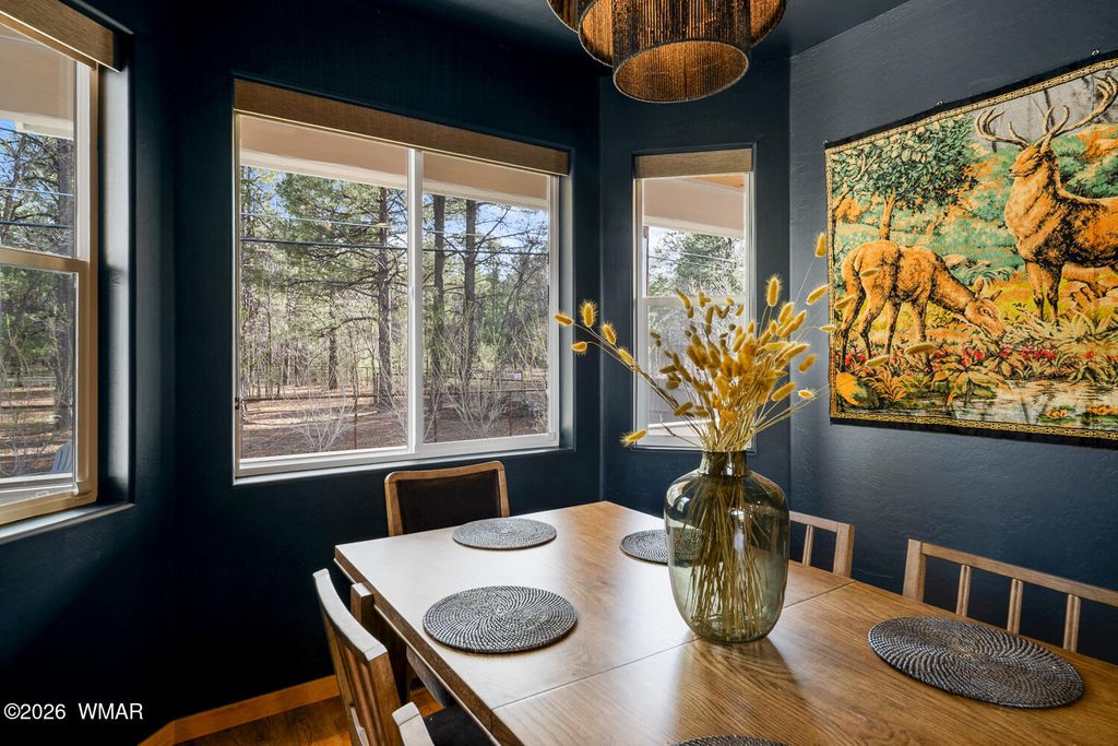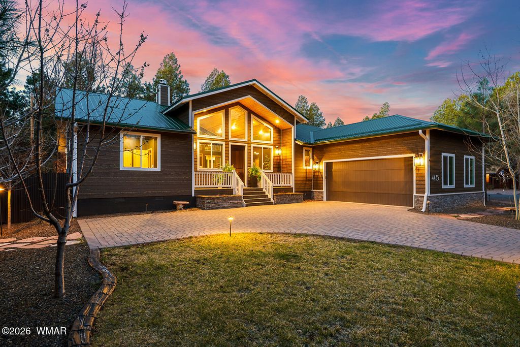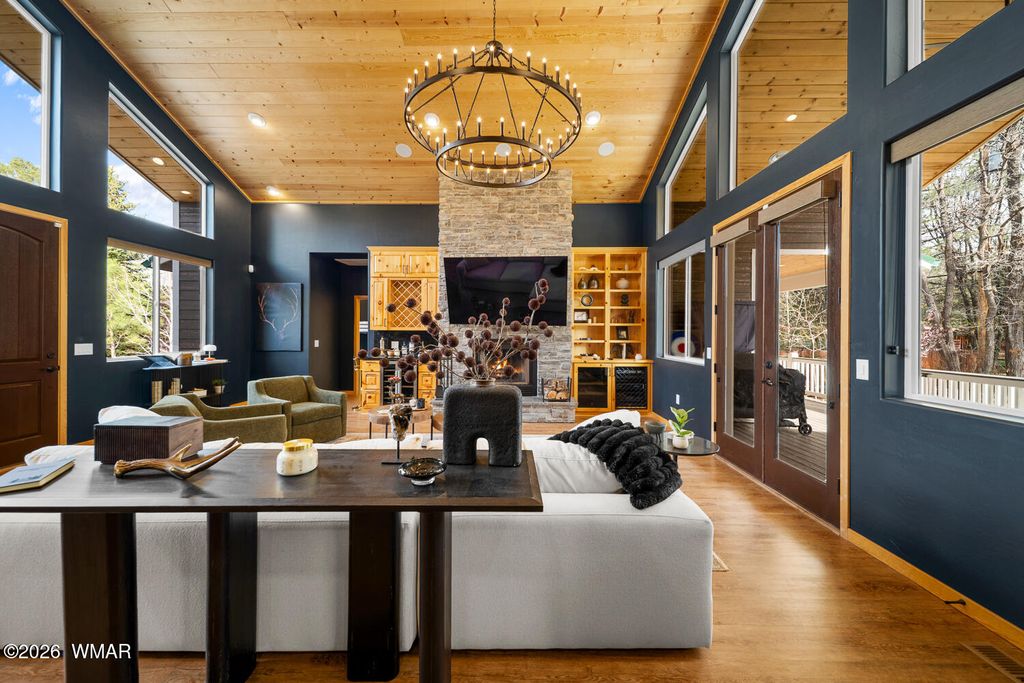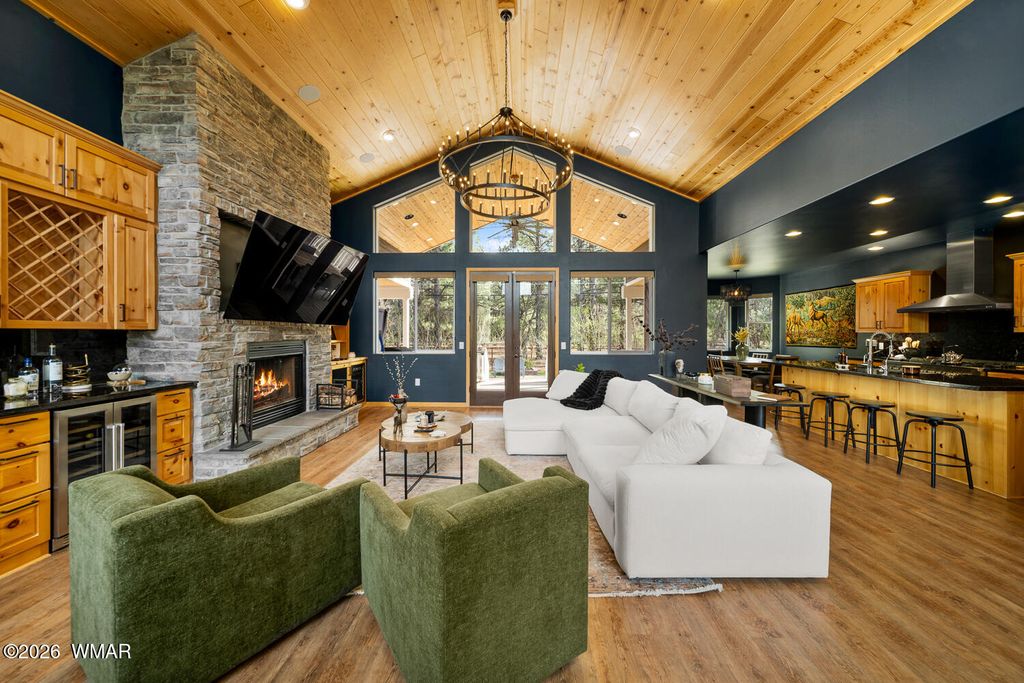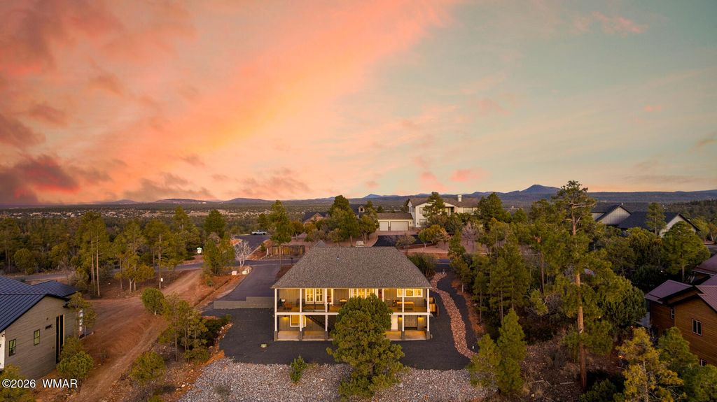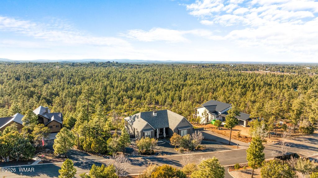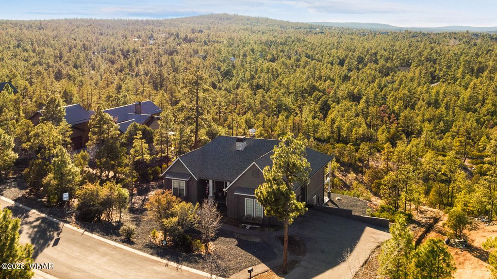 Escape the desert heat and breathe in the cool mountain air - in the pines of Northern Arizona! Beautifully finished inside and out, the open living area welcomes you with soaring vaulted ceilings, warm plank flooring throughout, and picturesque windows that frame the towering trees and fill every room with natural light. Cozy up to the wood-burning fireplace on crisp mountain evenings. The chef-inspired kitchen impresses with a professional Thor gas range and double oven -- perfect for entertaining after a day in the town or exploring all the lakes and trails. Nearly 2,000 sq ft of thoughtfully designed living space features 3 bedrooms, 2 bathrooms, and a seamless indoor-outdoor flow to the paver back patio. The beautifully landscaped corner lot offers privacy and curb appeal, complete with a paver driveway and full fencing. A whole-house natural gas generator means year-round peace of mind. Low-cost HOA includes access to Pinetop Lakes Recreation Center. Your mountain escape awaits!