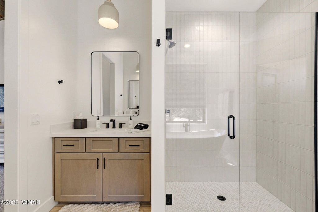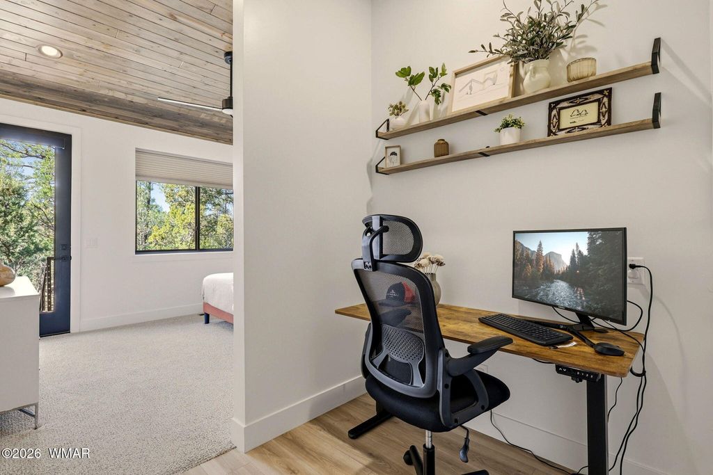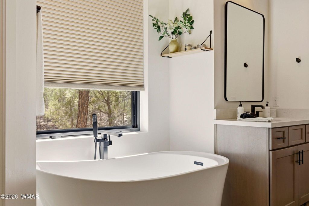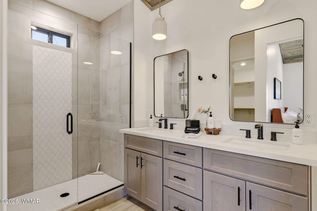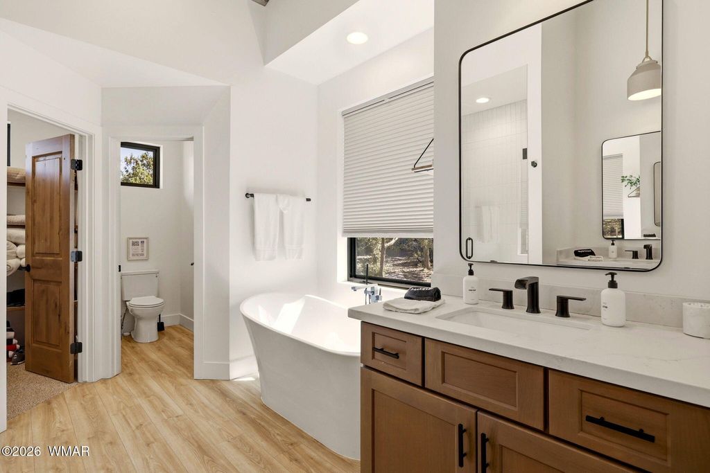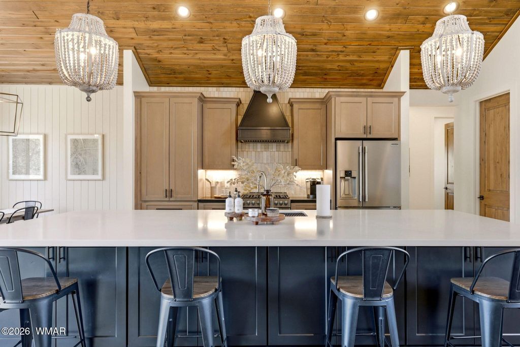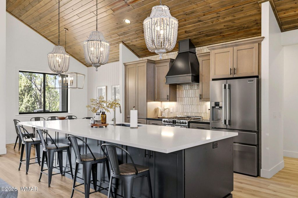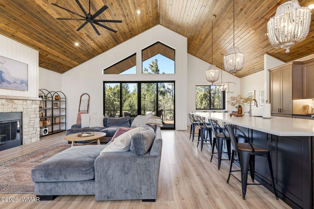 Nestled among tall ponderosa pines in the prestigious Torreon community in Arizona's White Mountains, this stunning 2022 Cambric Builders home offers the ideal mountain retreat. Approximately 2,800 sq ft with 5 bedrooms, 3 bathrooms, and two primary suites, perfect for hosting family and guests. Open-concept layout with large windows and seamless flow from kitchen to great room and dining. Situated on a .81-acre lot backing to national forest, offering privacy and space. Torreon offers two championship golf courses, clubhouse, fitness center, pool, tennis, pickleball, family center, and scenic walking trails.