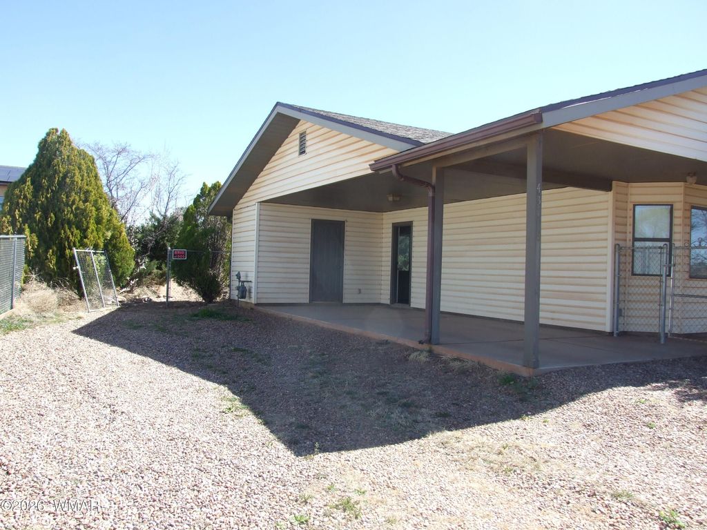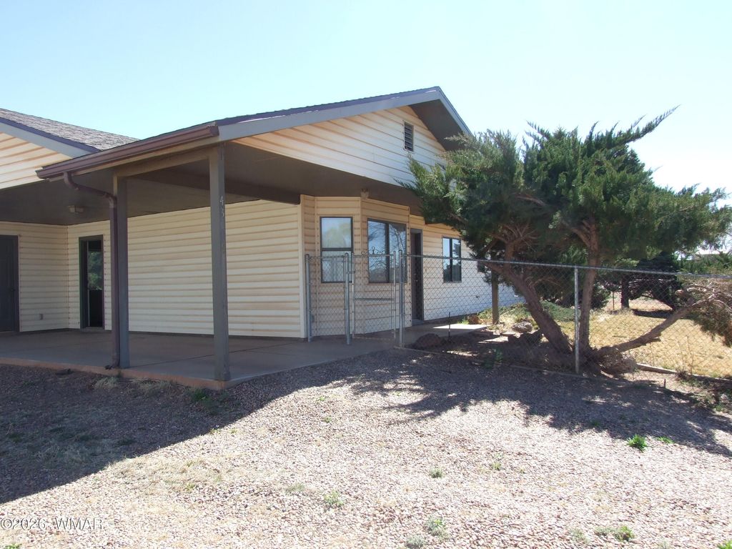 Very lovely 3 bedroom and 2 bathroom home in Taylor, AZ. Newer viny plank flooring throughout the home. Vaulted ceiling in living room and opens into the dining room with an eat in kitchen. Newer hot water heater and shingles. Nice fenced yard with mature trees and plants. Custom curbing. A credit for flooring, landscaping, or whatever will be given to Buyer from proceeds of sale. This home has so much potential and just needs a new Buyer to make it their own. Lots of storage and large carport and parking area. Easy access. Home has a country feel, but close to lots of places.