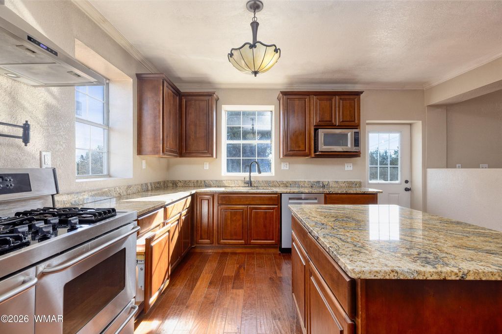 Tucked into quiet Linden, this 5-bedroom, 3-bath residence offers the space, layout, and setting buyers are searching for. Multiple living areas, a den, and a spacious office provide flexibility for remote work, hosting, or multi-generational living. The kitchen showcases granite countertops, abundant cabinetry, and a generous pantry, opening to comfortable gathering spaces. Upstairs and downstairs living areas create separation without sacrificing connection. Enjoy expansive decks with elevated views, fresh mountain air, and frequent wildlife. Fenced yard, 2-car garage, and generous storage enhance everyday livability. Private, tree-filled setting just minutes from Show Low shopping, dining, medical, and year-round recreation nearby offering comfort, scale, and versatility throughout. This property is especially appealing because of how well it adapts to a variety of living situations. The additional rooms and flexible spaces allow for dedicated work areas, guest accommodations, hobby rooms, or multi-generational setups without sacrificing comfort or flow. Buyers who need more than just bedrooms will recognize the advantage of having true, usable space. The Linden area is known for its quieter atmosphere, larger parcels, and natural surroundings compared to more densely developed parts of Show Low. This location provides a sense of separation and privacy while still allowing for a short drive into town for daily needs, making it a practical choice for full-time residents. Seasonal living here is also a major benefit. Cooler summer temperatures, changing fall colors, and mild winters create year-round appeal. The surrounding White Mountains offer access to hiking, fishing, off-roading, and other outdoor activities, making this an ideal base for those who value both recreation and a slower pace of life. For buyers considering long-term use, the combination of layout and location supports a variety of future needs. Whether accommodating changing household dynamics, creating additional work-from-home setups, or simply wanting room to grow, this property offers flexibility that extends beyond immediate use. Properties offering this level of space, flexibility, and setting are limited; schedule your private showing to experience it in person.