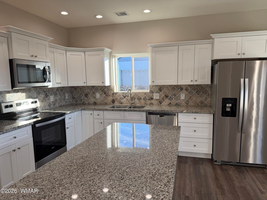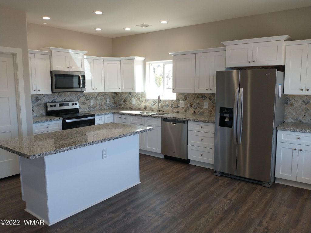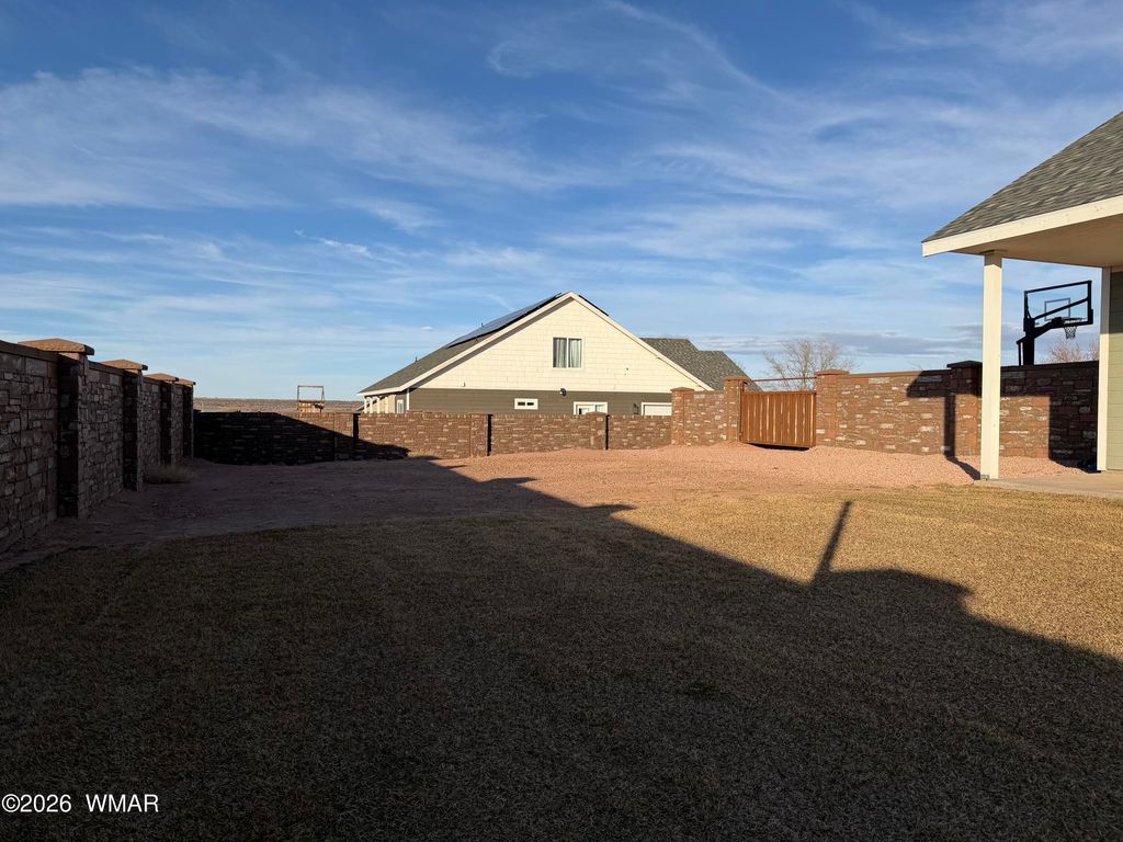 Beautiful home on Snowflake's Frontier Parkway. Walk to the golf course and enjoy a round or two or stroll up and down the manicured parkway with sidewalks on both sides of the divided roadway. Home boasts lifetime (50 year) shingles, spray foam insulation, granite countertops, solid-wood cabinetry with soft close doors and drawers, stainless steel kitchen appliances, tankless water heater, huge laundry, open floor plan, and a large upstairs game room/loft. Back yard is enclosed with a solid, verti-crete wall, and features a huge covered back patio and grass with automatic sprinklers. Front yard is hardscaped for low maintenance and driveway is of stamped concrete. Come see your perfect home.