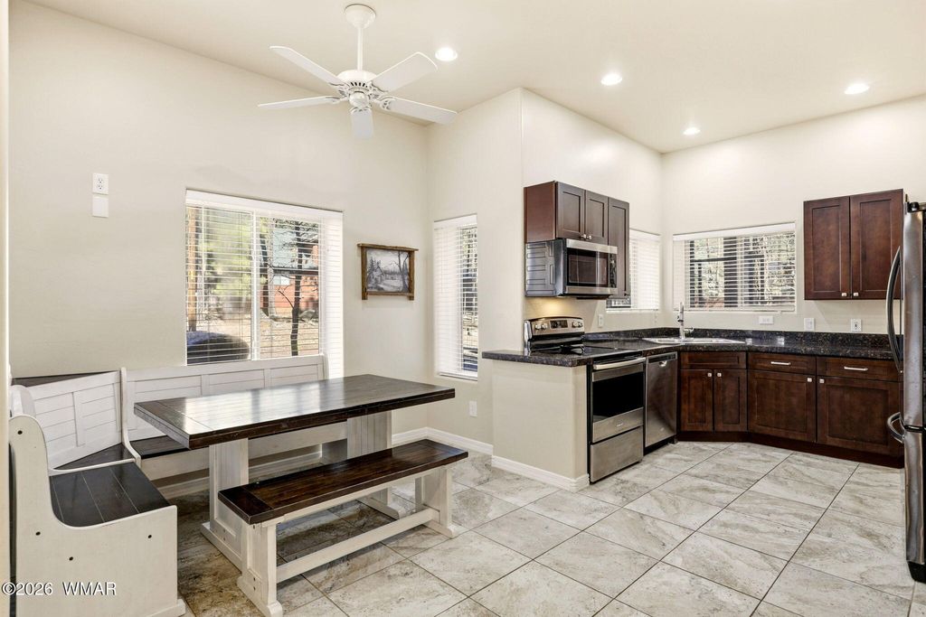 Call today for your private tour of this beautifully updated 4-bedroom, 4-bath home in the highly sought-after Pinetop Country Club. Featuring granite countertops throughout and updated flooring, this home offers both style and comfort in a prime mountain setting. The spacious layout is ideal for entertaining or accommodating guests, while the large garage provides plenty of room for vehicles, outdoor gear, and toys to enjoy the nearby national forest. Ownership includes access to the Pinetop Country Club recreation center, adding even more value and lifestyle appeal. Whether you're looking for a full-time residence, vacation getaway, or income-producing Airbnb/VRBO, this property checks all the boxes. Let this home unlock access to all the attractions in the Apache-Sitgreaves National forest. Two minutes to access the popular Maverick OHV trail head, and under four minutes to beautiful Springs, Blue Ridge, Country Club and the new panoramic Lumberjack trail heads, opening up access to hundreds of miles of OHV and single-track trails, meeting all your mountain biking, hiking, running, and camping desires. Want to wander forest in your vehicle or gravel road bike, Forest Service gravel roads 182, 185 and 187 all within five minutes. Ready to hit the slopes or trails at Sunrise Ski Resort, only thirty minutes away. Get suited up in your own bedroom!