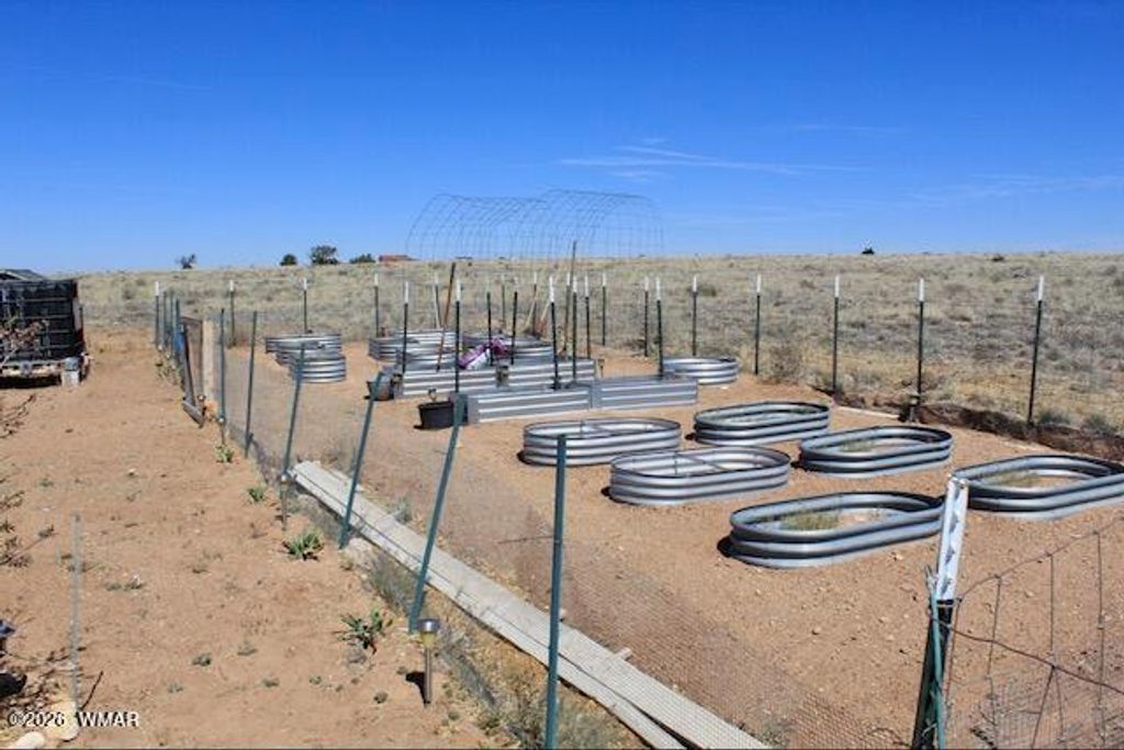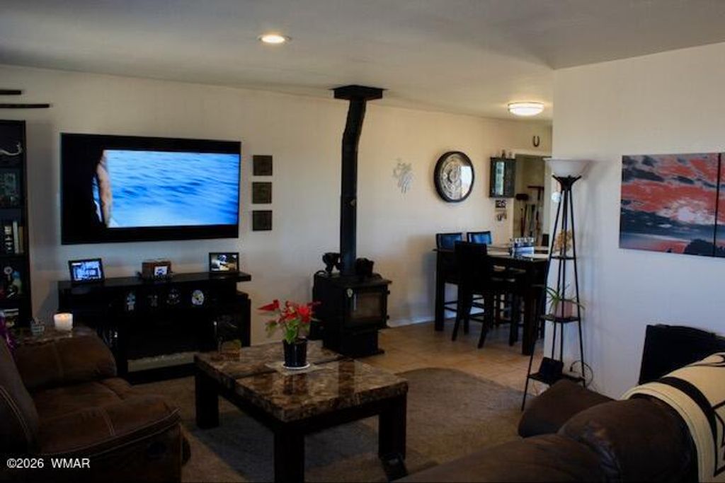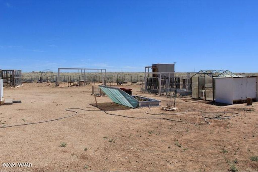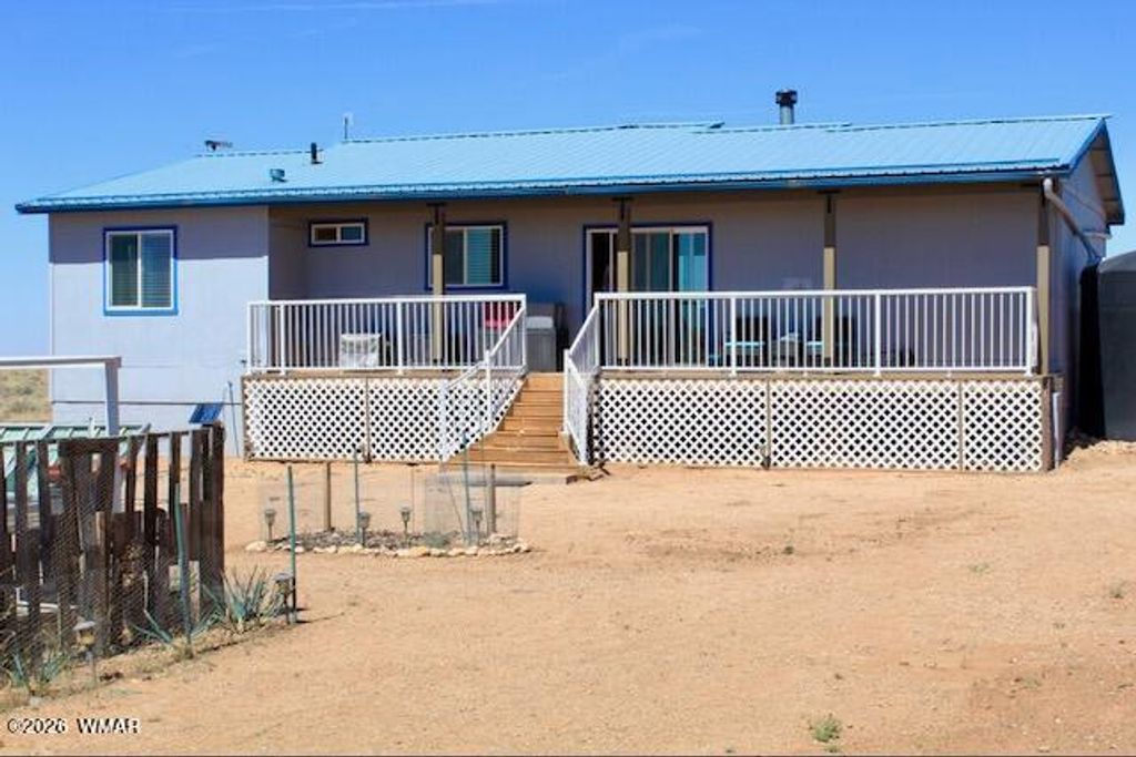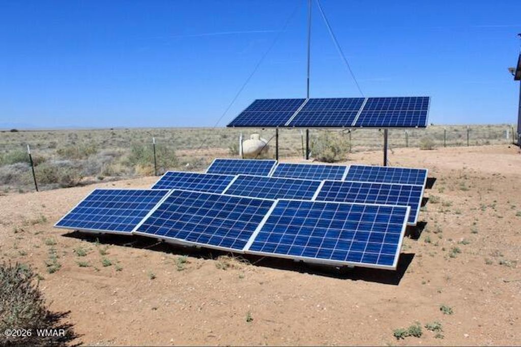Experience true Arizona independence with this off-the-grid retreat in the scenic community of Chevelon Canyon Ranch. Set on 37.5 private acres, this property offers unmatched peace, privacy, and wide-open skies. The home lives larger than expected, featuring two generously sized bedrooms and a well-appointed bathroom. The expansive kitchen and dining area provide plenty of room to gather, with a gas stove perfect for home-cooked meals. A cozy family room with a wood-burning stove creates a warm and inviting space during cooler months. Take in endless panoramic views from both the front and back porches--ideal for enjoying quiet mornings and breathtaking sunsets. Designed for self-sufficient living, the property includes owned solar and wind power, a conventional septic system, a 3,000-gallon water tank, and a rainwater harvesting system. Water can also be conveniently hauled from the nearby community source less than a mile away. The land is thoughtfully improved with partial fencing, a large fenced chicken coop, a dedicated goat enclosure, fenced garden areas, a greenhouse, and mature fruit trees--perfect for those seeking a sustainable lifestyle. Enjoy the perfect blend of modern comfort and off-grid living in this exceptional Northern Arizona escape.