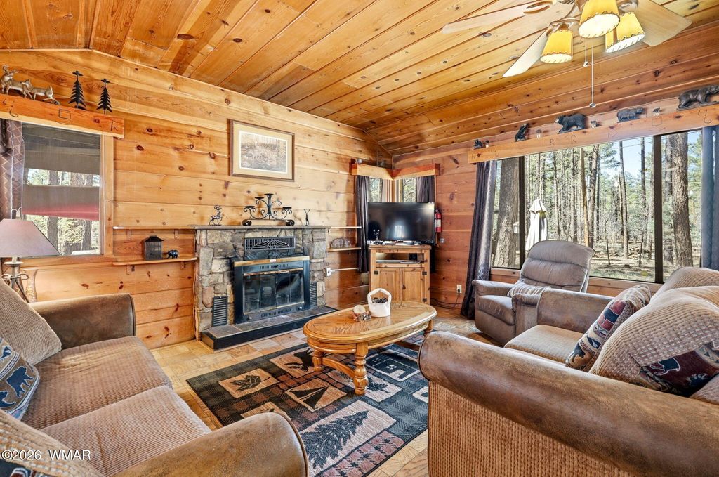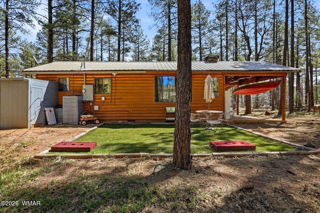 Tucked within the highly sought-after community of Lakeside Summer Homes, this charming cabin is nestled among the tall pines and offers the perfect mountain escape. Surrounded by natural beauty, the home is filled with cozy cabin character and warm, inviting spaces--ideal for relaxing weekends or a peaceful retreat from the heat. Whether you're enjoying quiet mornings on the porch or unwinding after a day in the White Mountains, this property captures the essence of cabin living. Large lot, .46 acres in the center of Lakeside. Per the owner, the square footage is closer to approximately 767 sq ft, including an enclosed porch addition; buyer to verify.