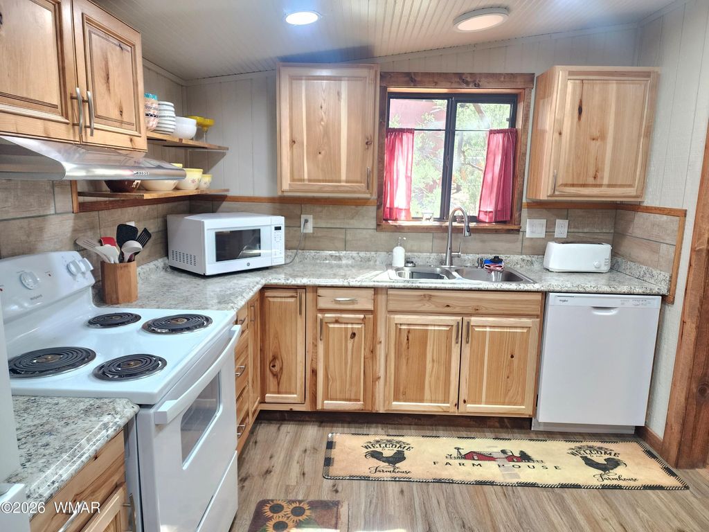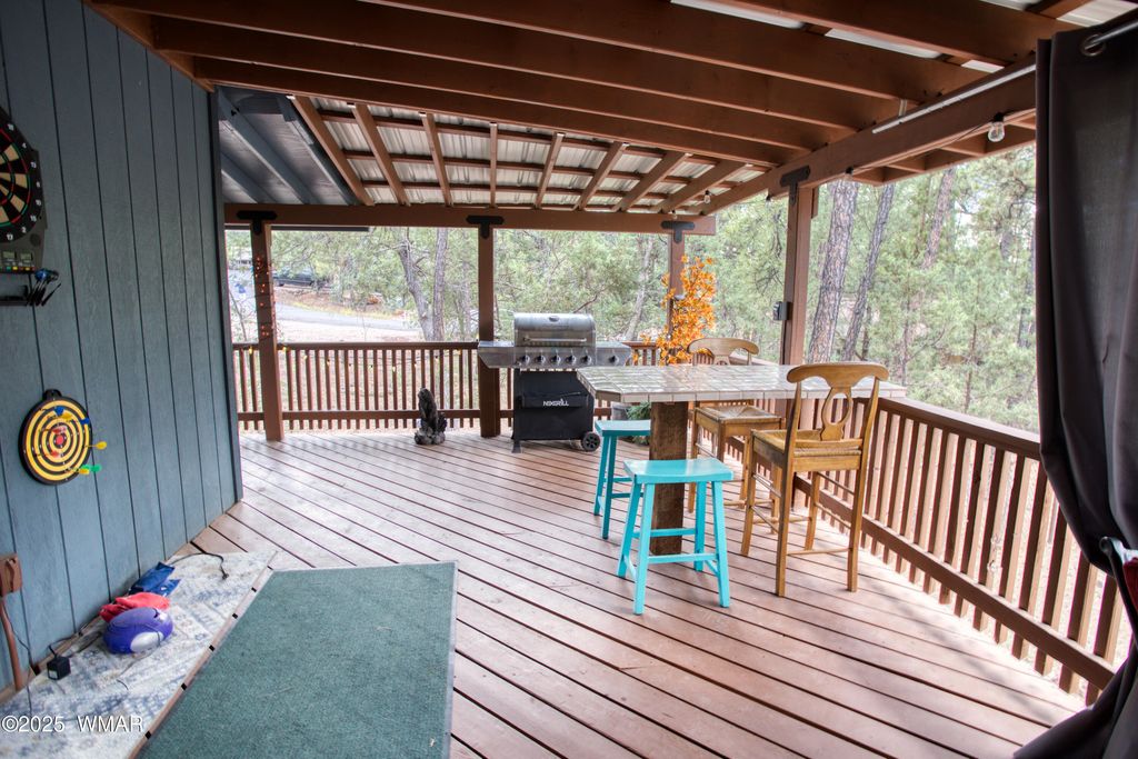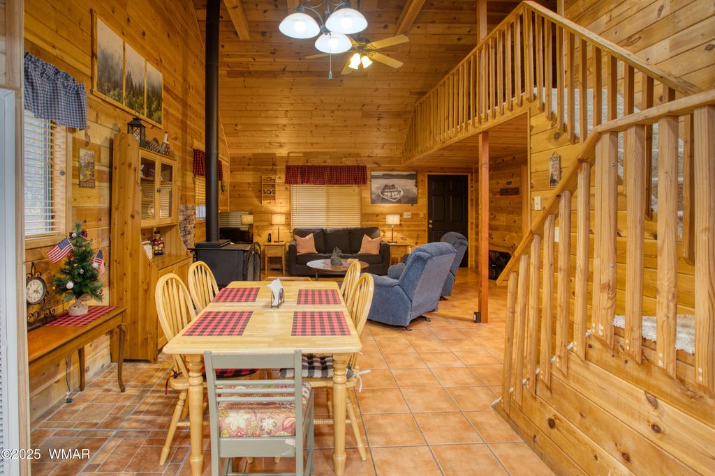 WOW--A Breathtaking Mountain Cabin Retreat in Pinetop! From the moment you arrive, you'll be swept away by the charm and warmth of this beautifully updated and remodeled mountain cabin. Whether you're dreaming of a year-round home, a summer escape, or a vacation rental, this 3-bedroom, 1.5-bath gem is a must-see! Rustic Elegance Meets Modern Comfort with All-Wood Ceilings & Walls, 5 new Windows, Rich textures and cozy ambiance throughout. The Woodstove and New Wall Panel System in the Living Area & New State of-the Art Wall Heaters throughout ensures a warm and cozy cabin. The Portable Air Conditioner and Ceiling Fans are Powerful enough to keep things cool even on the warmest days. The Stunning New Kitchen has gorgeous countertops, Hickory Cabinets, modern appliances, and inviting décor. and the adjoining Laundry Area is conveniently tucked away for easy living. It comes Fully Furnished with fabulous furniture and mountain-inspired furnishings that captures the warmth and comfort of Mountain Living. The Outdoors captures Living at its Best with the Metal Roof and Covered Wraparound Deck...Ideal for entertaining, relaxing, or soaking in the serene pine-filled surroundings. There are Outdoor Lights Strung for Entertaining and Ambiance while Grilling playing games or simply unwind in nature. The Oversized Fenced Yard provides Plenty of space to roam, with a handy 12' x 10' Shed that has power and has lots of room for storage. This cabin is more than a home...it's an experience. With every detail thoughtfully designed to embrace the mountain lifestyle, you'll find yourself falling in love the moment you step inside.