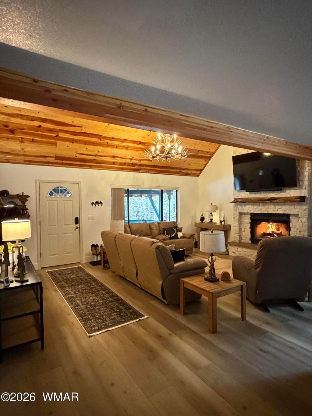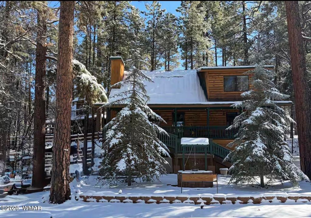 Tucked beneath towering pines in the heart of Pinetop CC area, this charming mountain retreat offers the perfect balance of rustic comfort and modern convenience. Soaring ceilings, a stunning 20-ft stone fireplace, and warm wood finishes create an inviting interior designed for both relaxation and entertaining. The home features new hardwood floors, brand new kitchen appliances, freshly painted, thoughtful upgrades throughout, blending timeless mountain character with modern ease. Step outside to your private deck and take in the crisp mountain air, or head out to nearby trails for hiking and biking adventures. Located just minutes from the private country club, residents have the option to enjoy premier amenities including golf, tennis, pickleball, dining, and year-round communit Whether you're looking for a summer escape, a winter retreat, or full-time mountain living, this home delivers the best of Pinetop's four-season lifestyle. Completely set up for an Airbnb/Short term rental with 5-star reviews, if you'd like to rent out.