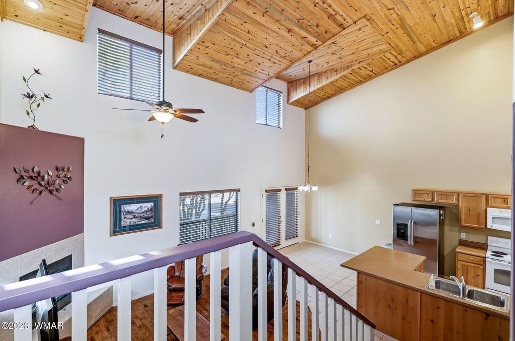 The thoughtfully designed main level features a guest bedroom, full bathroom,& laundry area, along with an open-concept kitchen, dining,& living space. Soaring vaulted ceilings with beautiful tongue-&-groove detail create a warm, inviting atmosphere, while the gas fireplace is perfect for relaxing evenings.