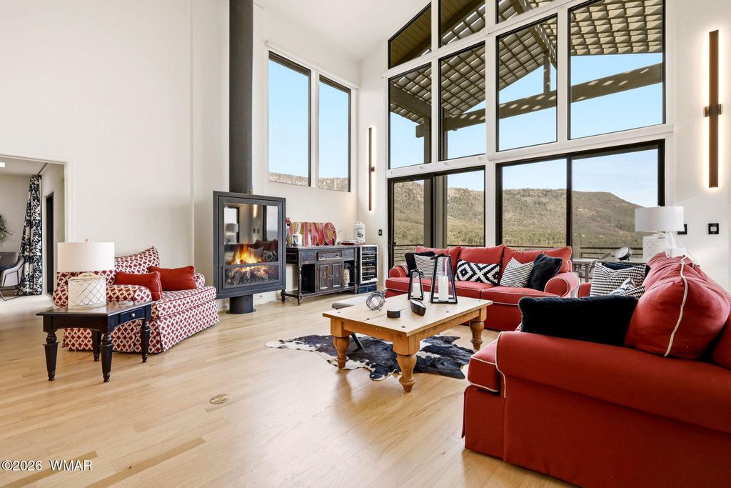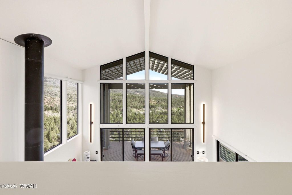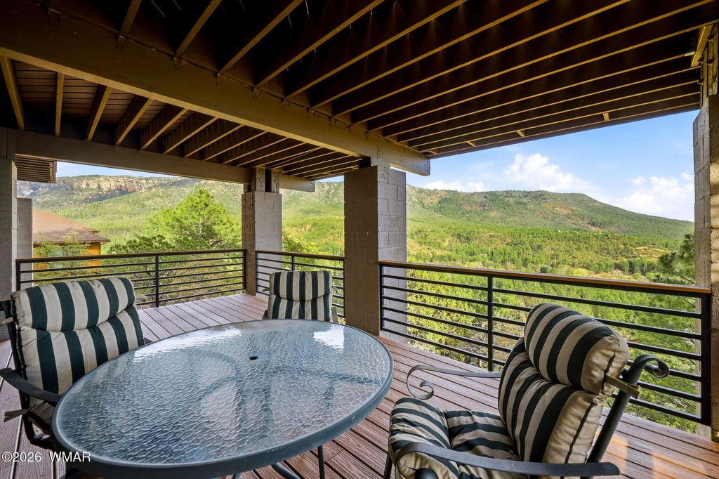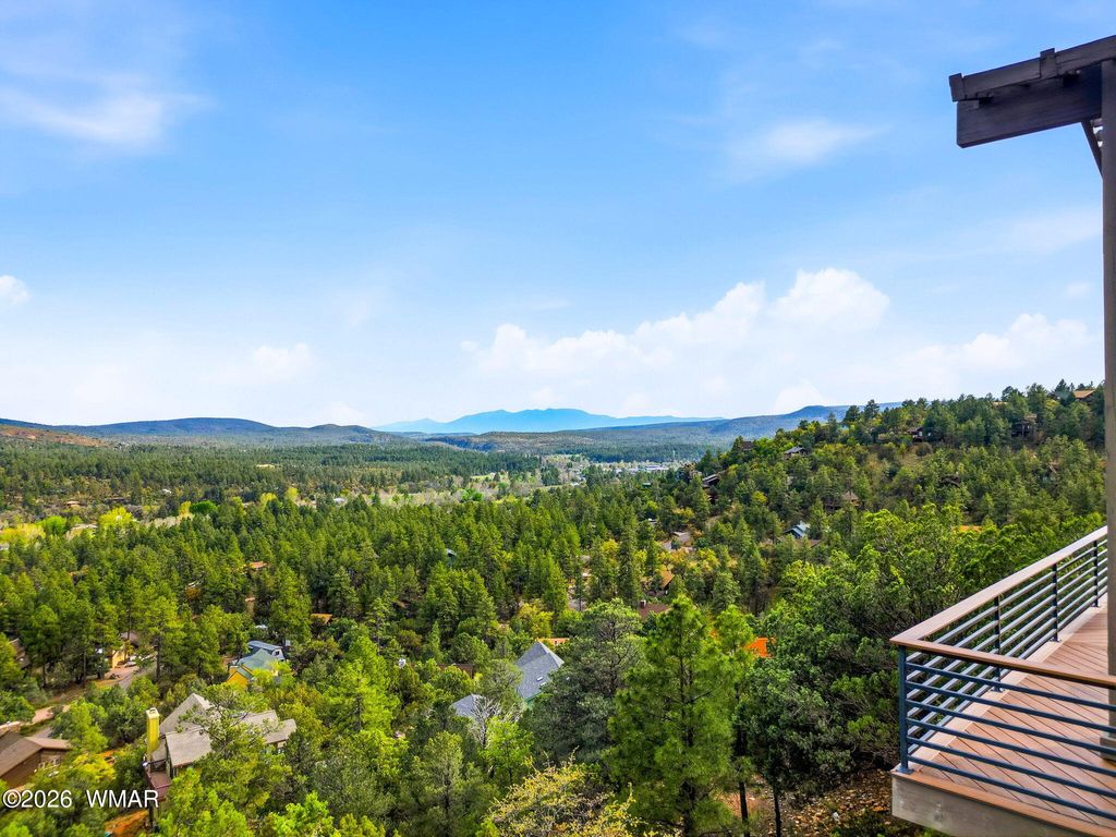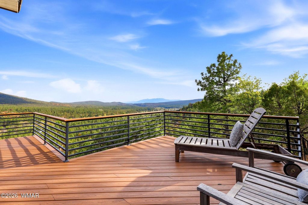 Step outside to the rebuilt upper and lower Trex decks - the crown feature of this home - where the elevation and nearly one-acre lot deliver unobstructed views of the Mogollon Rim, the valley below, and the tree canopy in every direction. New gutters, new deck railings, and new exterior lighting round out an exterior that's genuinely maintenance-ready.